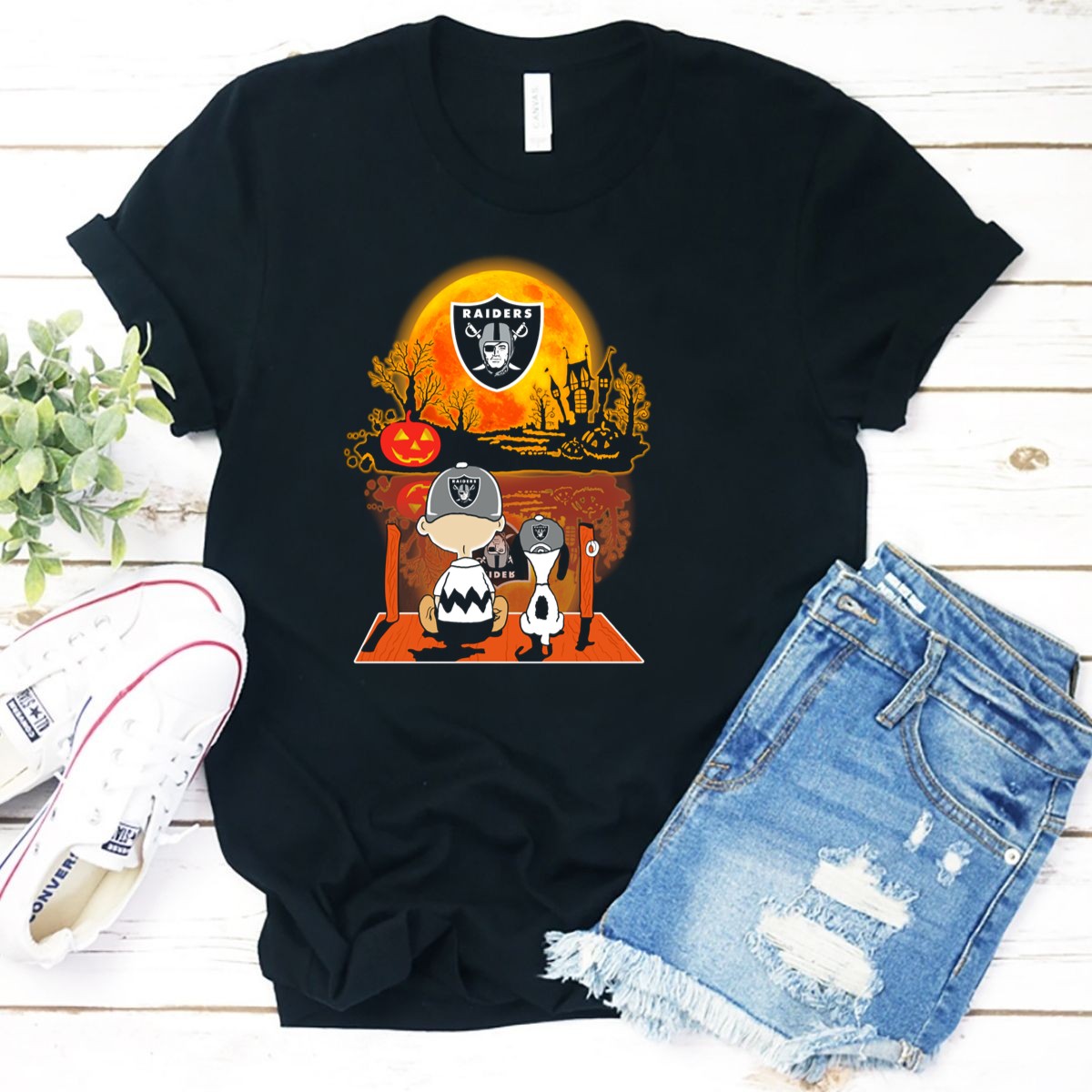 Celebrate the spooky season with our Raiders Halloween Snoopy Charlie Brown Pumpkin Moon T-Shirt. Perfect for fans of the beloved Peanuts gang, this shirt combines festive fun with your love for the Raiders. Whether you’re heading to a Halloween party, a casual outing, or just enjoying a cozy day at home, this unique fan-made design, printed in the USA, will make you stand out in style.