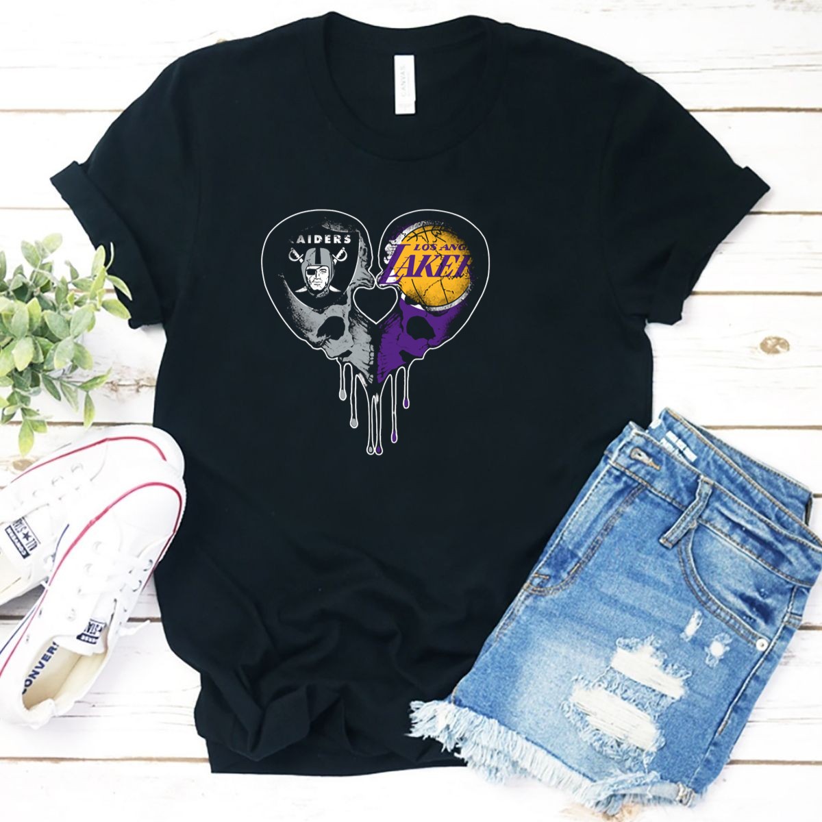 Show your love for both the Raiders and Lakers with our unique Raiders Lakers Skull Heart Fusion T-Shirt! This fan-made design is perfect for dedicated supporters who want to express their team spirit in a bold and creative way. Whether you’re heading to a game, a themed event, or just enjoying a casual day out, this shirt combines comfort and style, making it a must-have for any sports enthusiast.