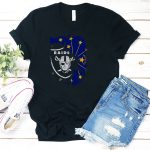 Show your pride with this unique Raiders Logo Overlay T-shirt, featuring a striking design that combines the iconic Raiders logo with the Indiana State flag, complete with stars and a helmet. Perfect for fans of all ages, this shirt makes a bold statement at casual gatherings, themed events, or simply while going about your daily activities. Crafted with care in the USA, this fan-made design is not just a piece of clothing; it’s a celebration of team spirit and state pride.