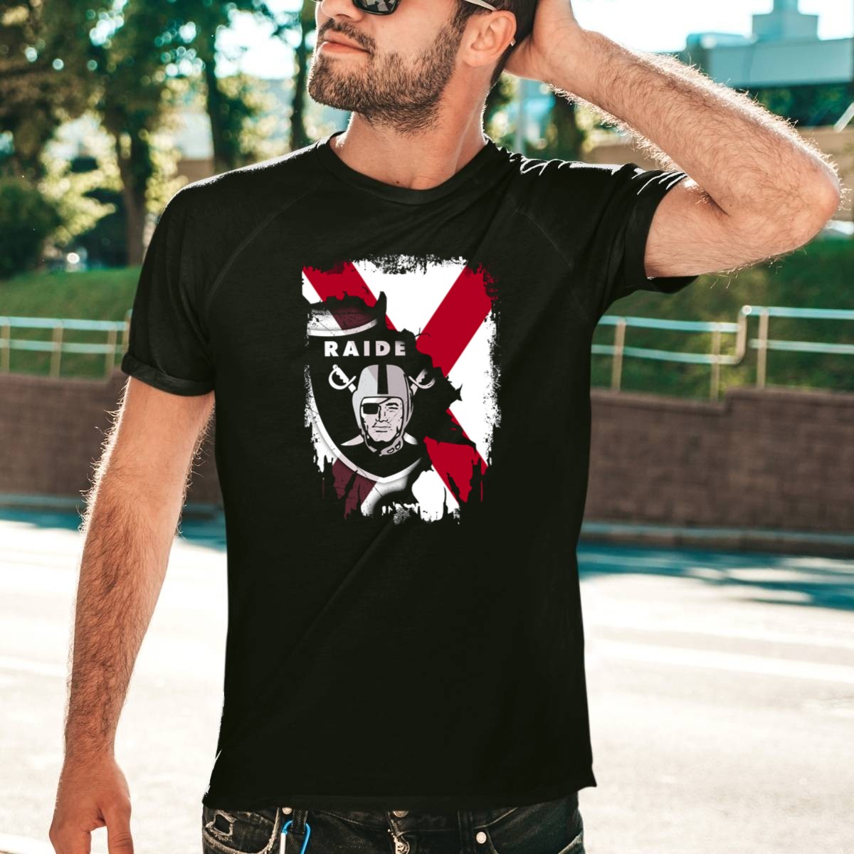 Show your team spirit with this Raiders Logo T-shirt featuring a striking Alabama flag background. Perfect for passionate fans and casual wearers alike, this shirt is ideal for themed events, game days, or just hanging out with friends. Made right here in the USA, this fan-made design is not only stylish but also celebrates your love for both the Raiders and Alabama. Stand out and make a statement with this unique piece!