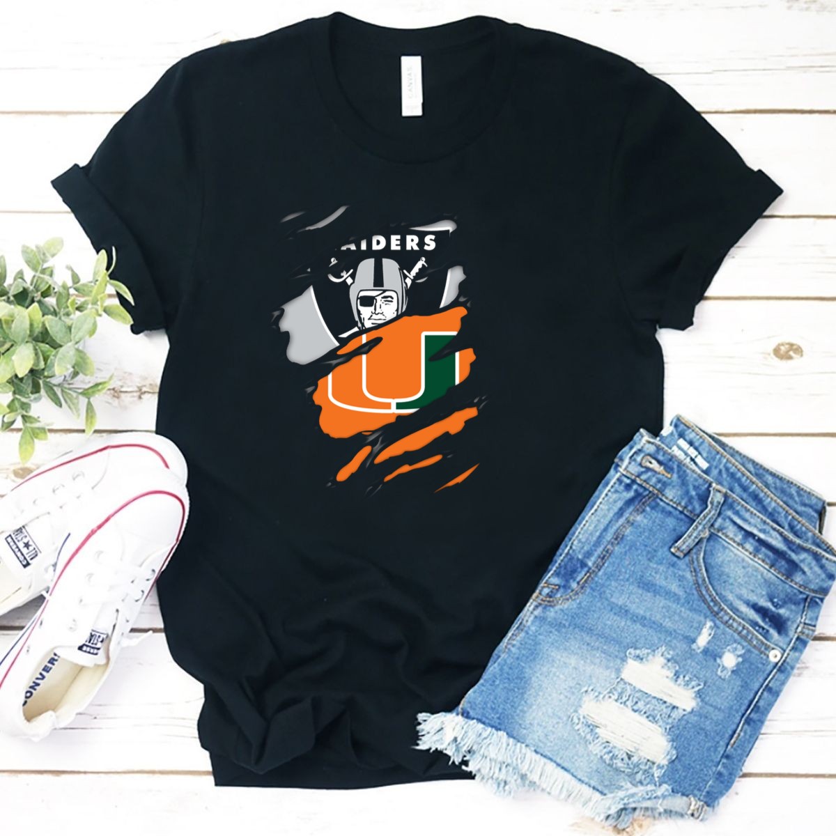 Show your unwavering support for the Miami Hurricanes with our Raiders Miami Hurricanes Crossover T-Shirt! This fan-made design is perfect for true fans who want to showcase their team spirit in style. Ideal for casual outings, themed events, or just lounging around, this shirt combines comfort with a bold statement, making it a must-have addition to any Hurricanes enthusiast’s wardrobe.