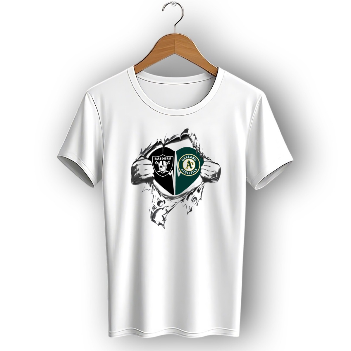 Show your unwavering support for the Oakland Athletics with our Raiders Oakland Athletics Heart Torn T-Shirt. Perfect for die-hard fans, this shirt combines comfort and style, making it ideal for casual outings, themed events, or daily wear. With its eye-catching design, this fan-made piece is printed right here in the USA, ensuring that you represent your team with pride wherever you go.