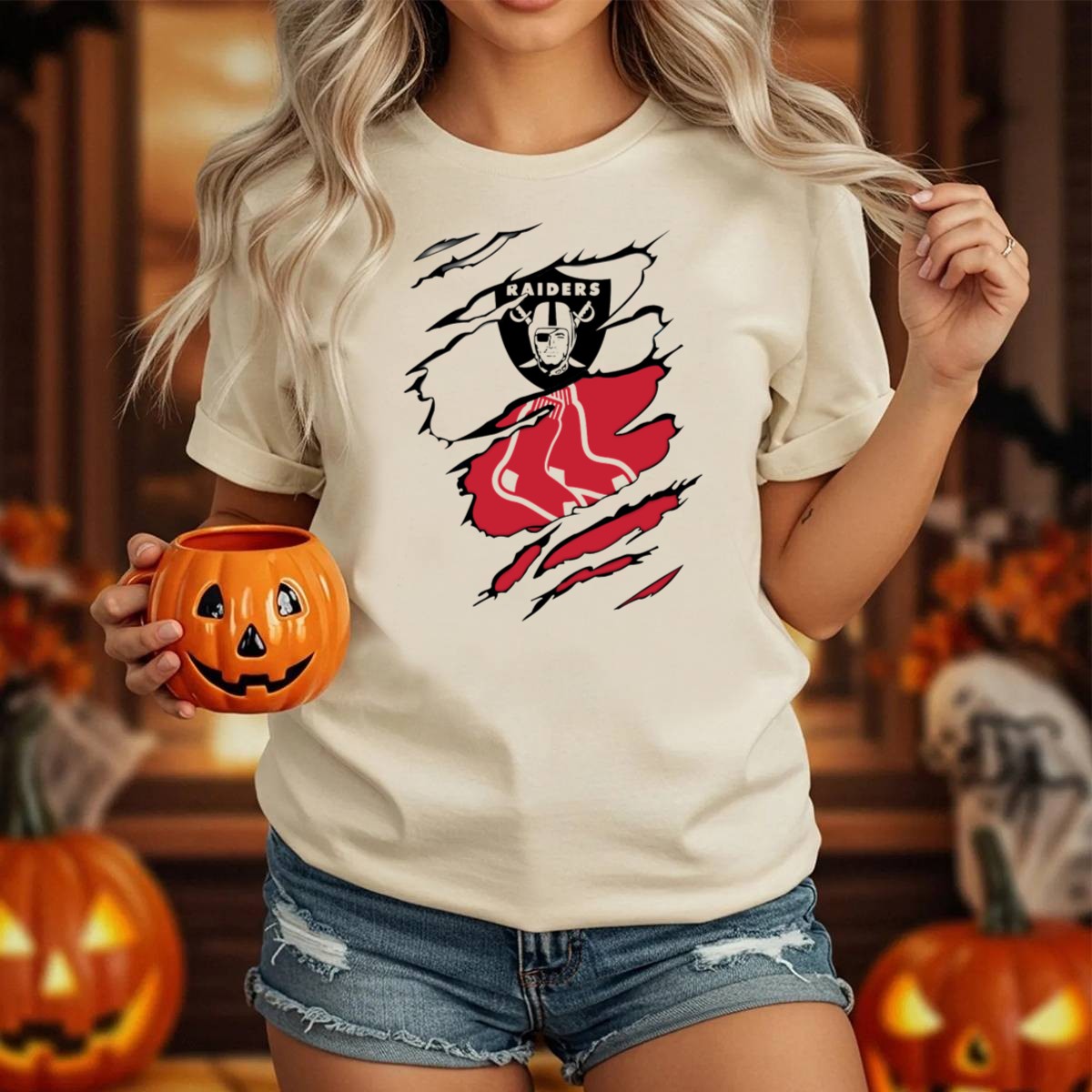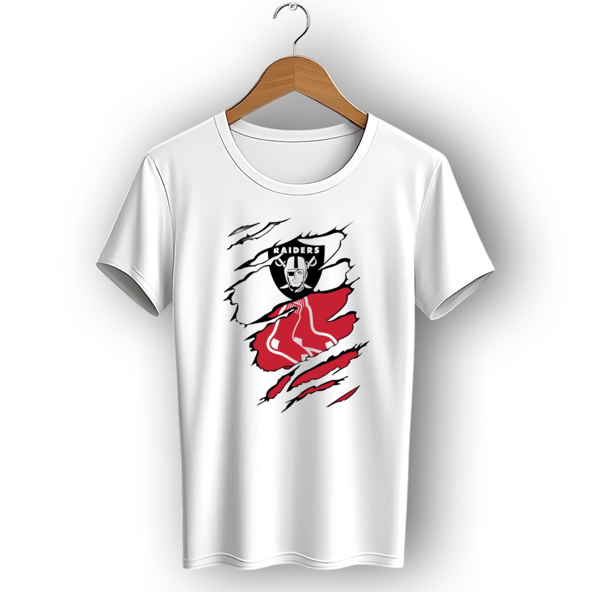 Embrace your love for sports with our Raiders Red Sox Torn Fabric Mashup T-Shirt, a unique fan-made design that celebrates two iconic teams in one stylish tee. Perfect for die-hard fans or casual wear enthusiasts, this shirt is ideal for themed events, game days, or simply lounging around. Crafted for comfort and durability, this standout piece is printed in the USA, ensuring that you wear your passion with pride.