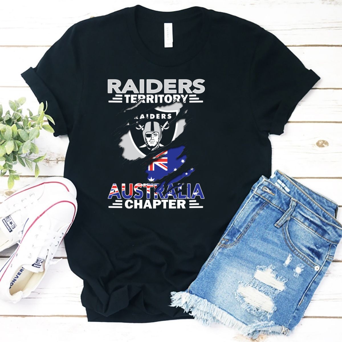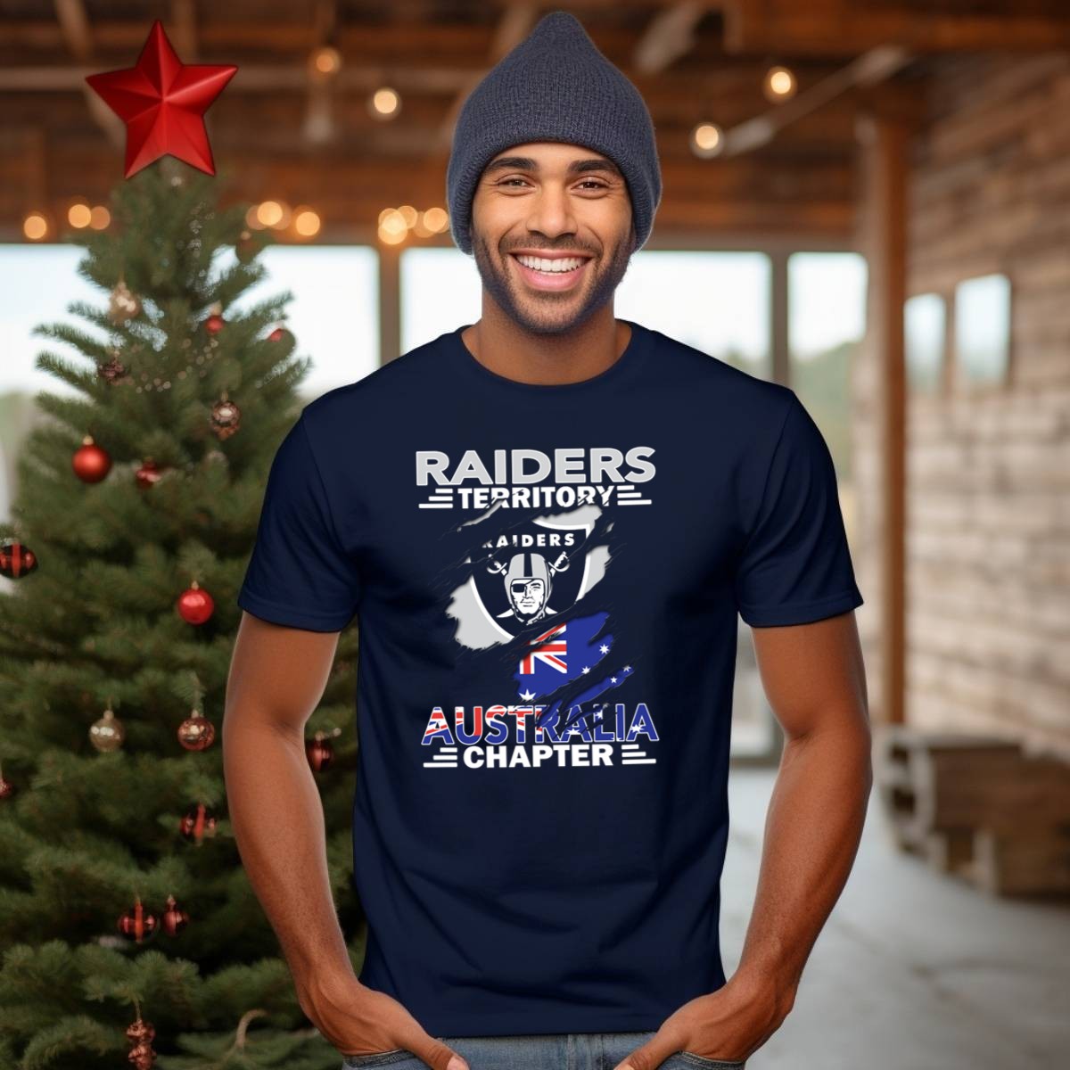 Show your pride for the Raiders Territory Australia Chapter with this eye-catching graphic T-shirt featuring the iconic Australian flag and Raiders design. Perfect for fans who want to represent their love for the team in style, this shirt is ideal for casual outings, themed events, or just lounging around. Made with care in the USA, this fan-made design is not just a shirt; it’s a statement of loyalty and passion for the Raiders.