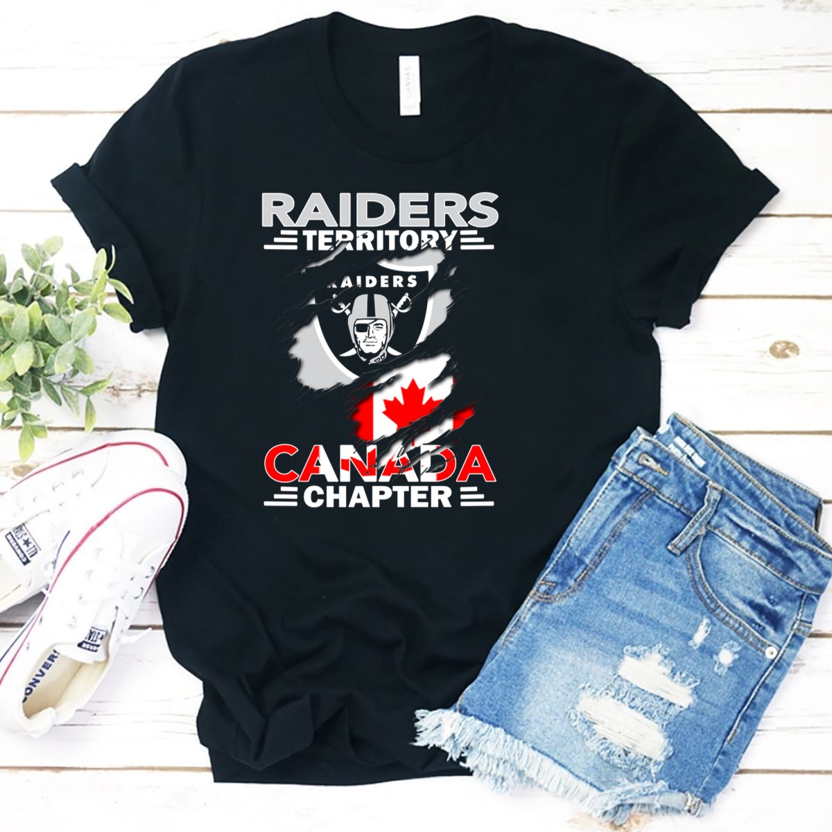 Raiders Territory Canada Chapter Raiders Flag Logo Canadian Flag T-Shirt