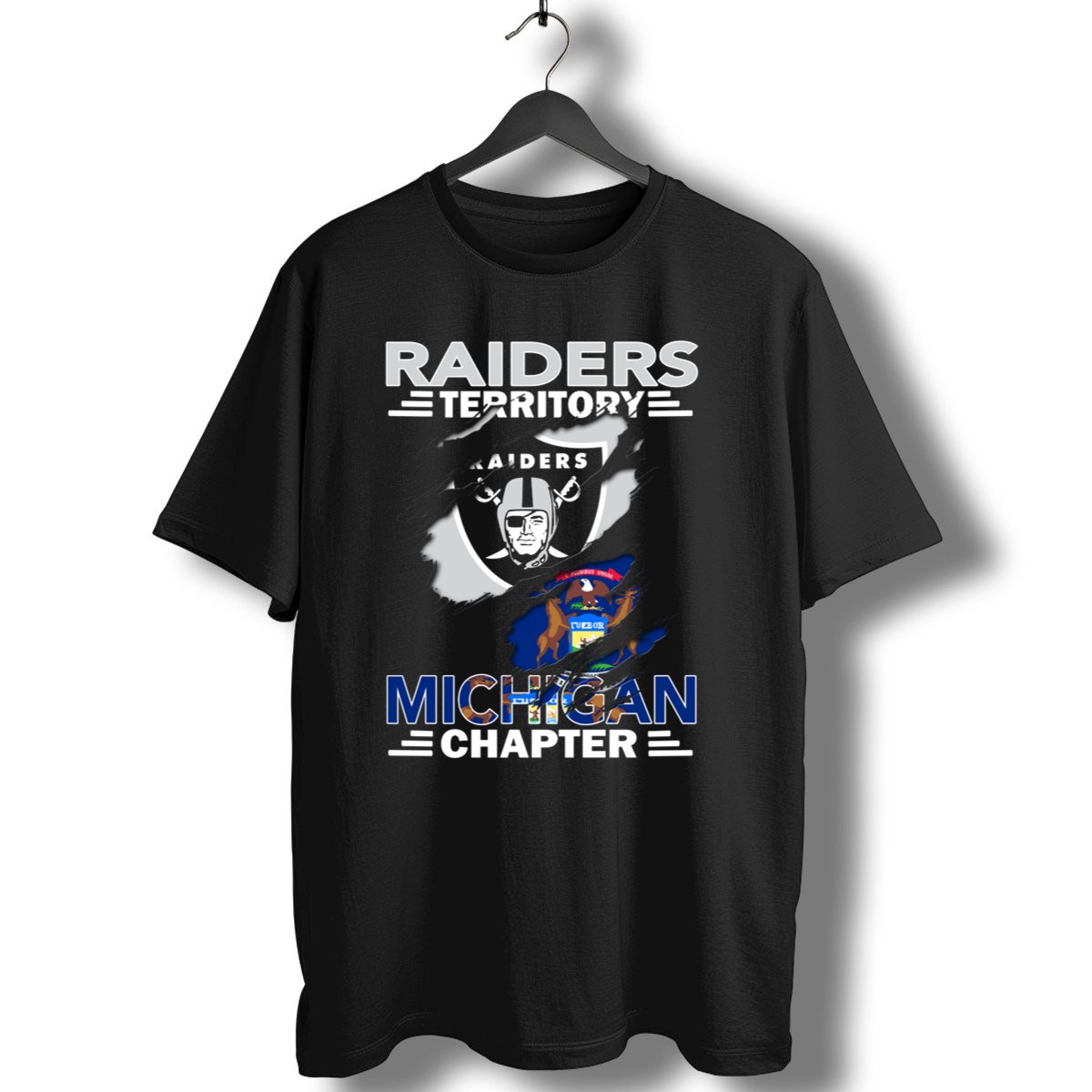Raiders Territory Michigan Chapter With Raiders Logo And Michigan Flag Elements T-Shirt