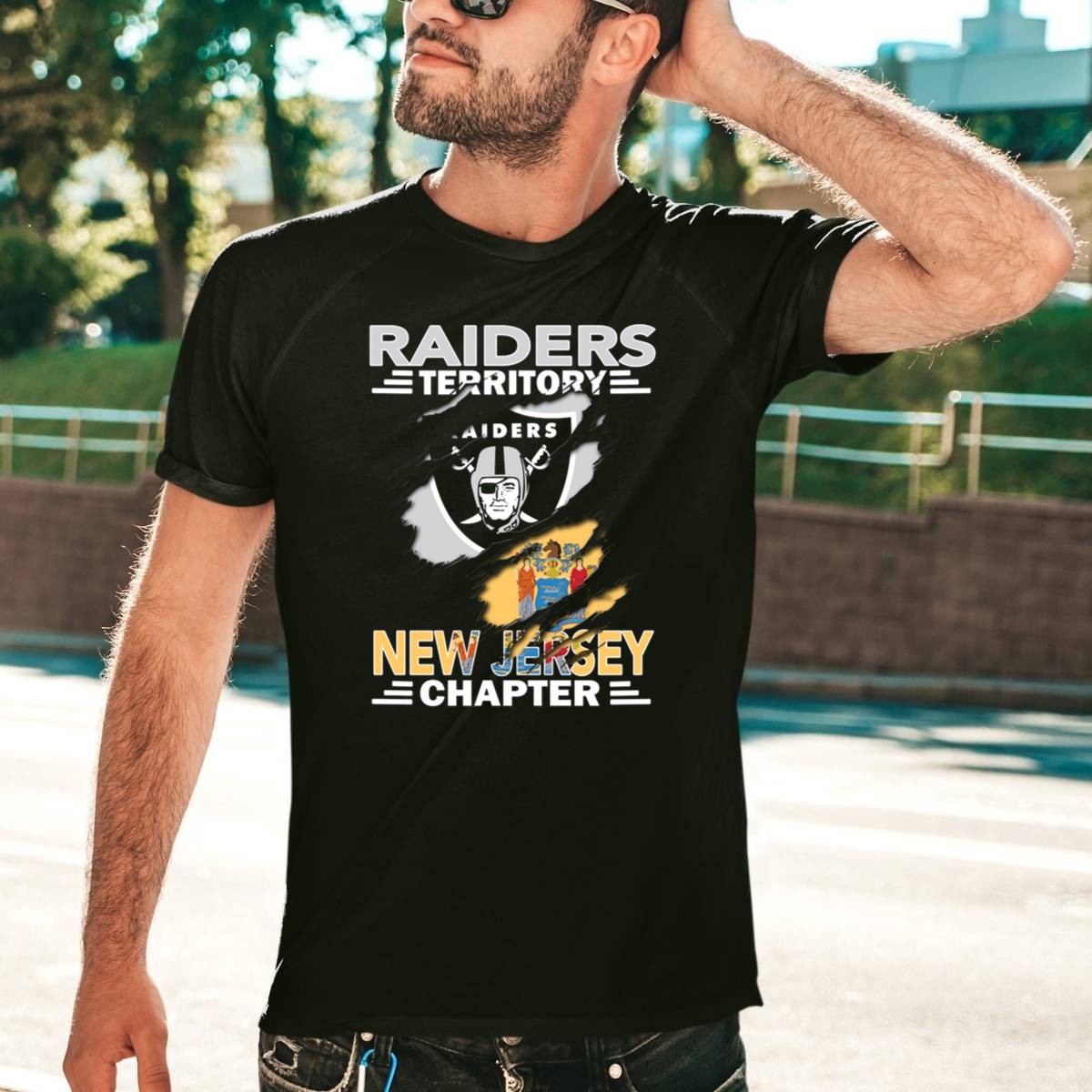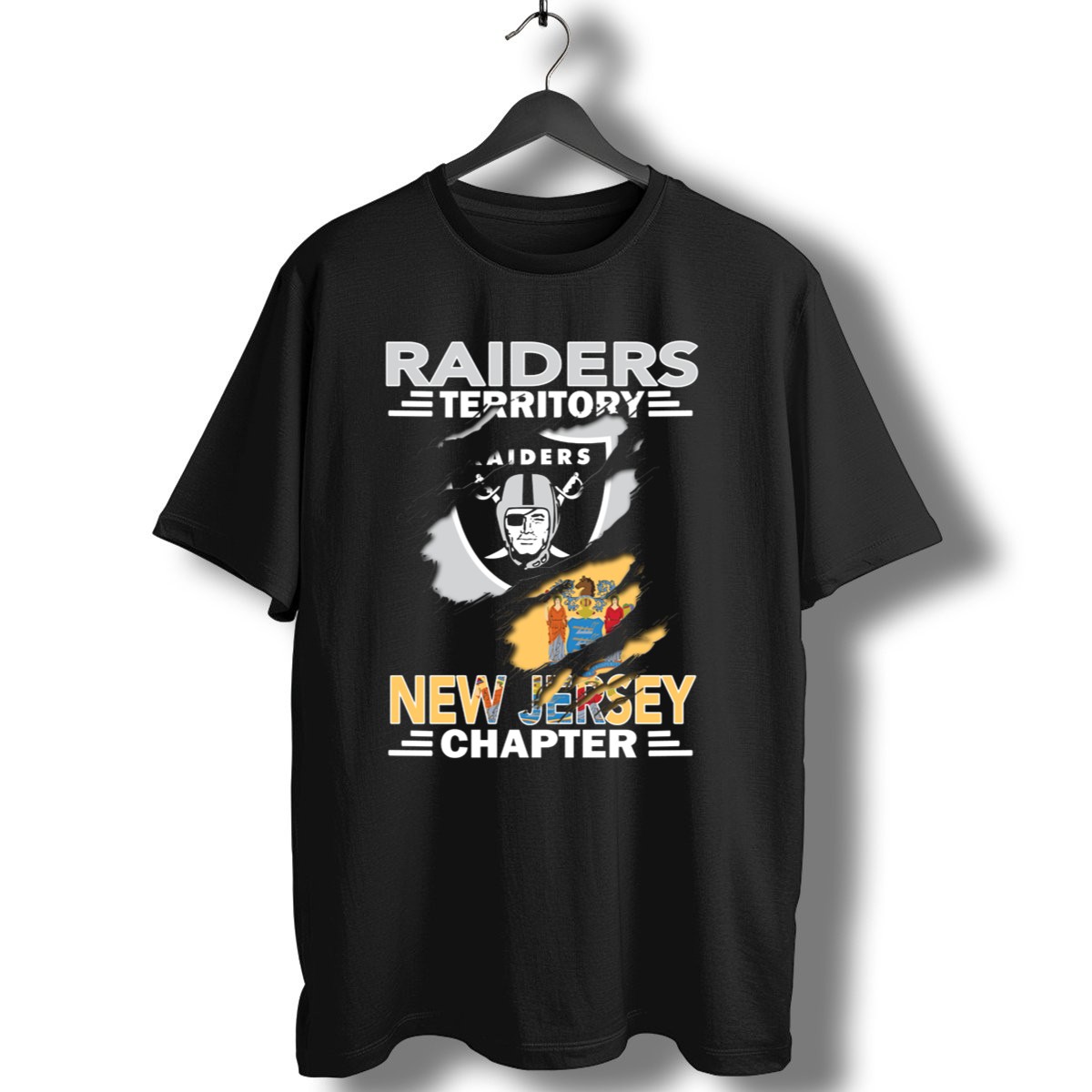 Show your pride for the Raiders and your love for New Jersey with our Raiders Territory New Jersey Chapter T-Shirt. This fan-made design features the iconic Raiders logo alongside the New Jersey state emblem, making it perfect for die-hard fans and casual wearers alike. Whether you’re attending a game, hanging out with friends, or just running errands, this shirt is a stylish way to represent your team and your home state. Made in the USA, this shirt combines comfort and team spirit effortlessly.