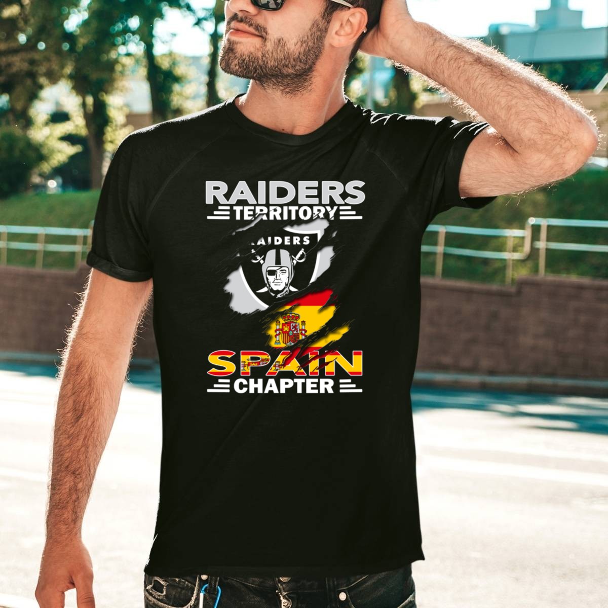 Show your love for the Raiders with our Raiders Territory Spain Chapter Flag and Shield T-Shirt! Perfect for fans who want to showcase their team pride in a stylish and comfortable way, this shirt is ideal for casual outings, themed events, or daily wear. Made with a fan-made design printed in the USA, it combines a classic look with a unique flair that sets you apart from the crowd.