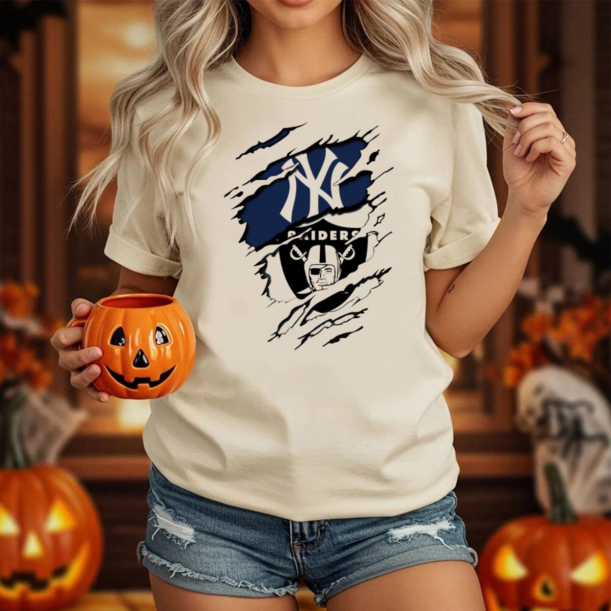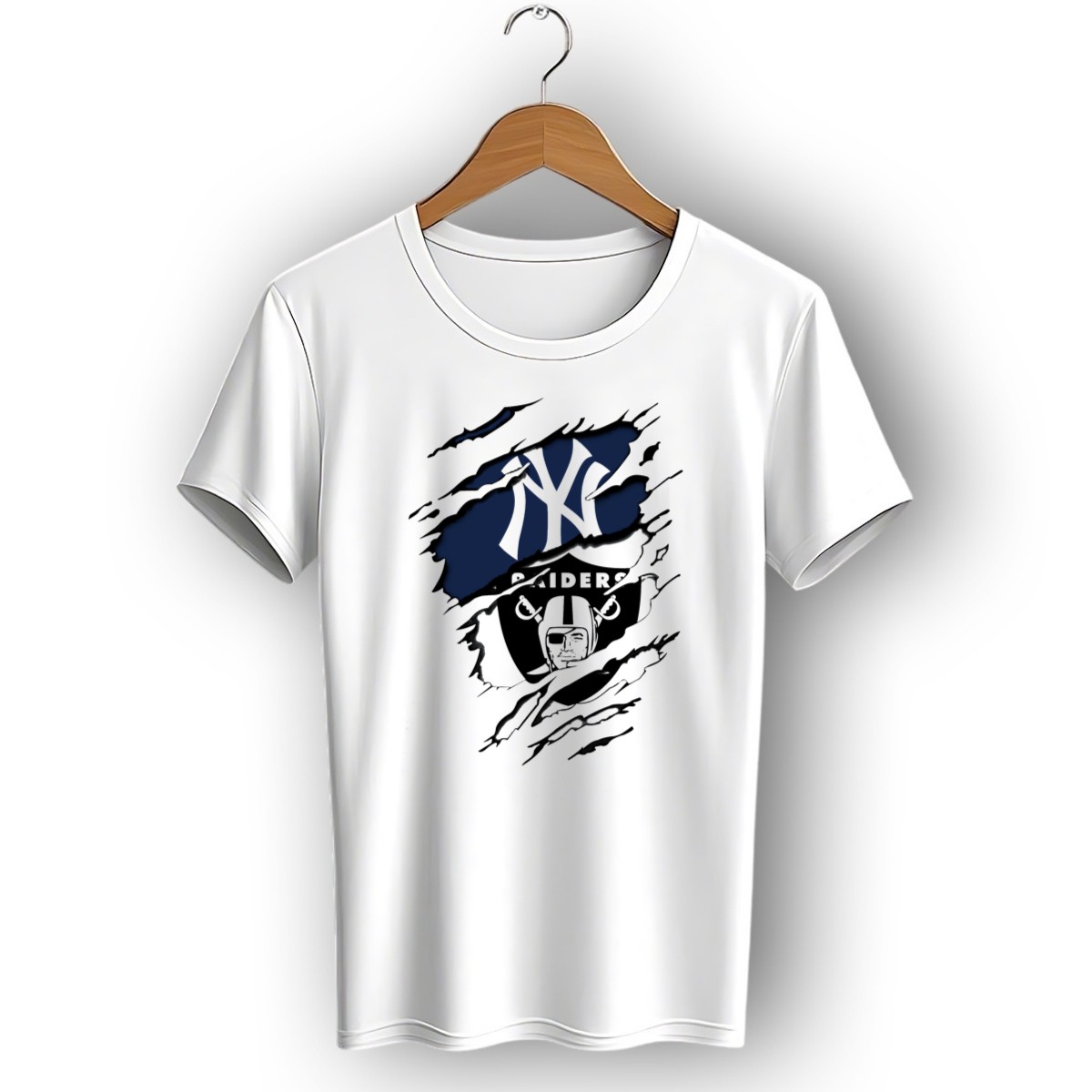 Show off your team spirit in style with our Raiders Yankees Dual Logo Fusion T-Shirt! Perfect for the ultimate sports fan, this unique shirt combines the iconic logos of two legendary franchises into a striking design that celebrates your loyalty. Whether you’re heading to a game, hanging out with friends, or just enjoying a casual day out, this fan-made graphic tee is sure to turn heads and spark conversations. Plus, it’s printed right here in the USA, ensuring top-notch quality and vibrant colors.
