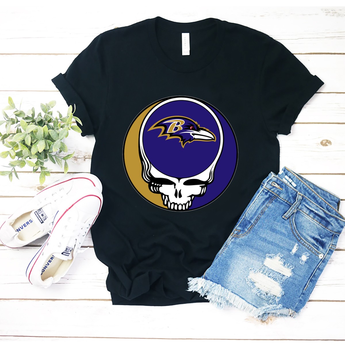 Show your unwavering support for Ravens Football with this unique fan-made T-shirt that combines your love for the game with a nod to the iconic Grateful Dead. Perfect for casual outings, themed events, or just lounging around, this classic-fit tee is designed for ultimate comfort and style. Whether you’re cheering in the stands or hanging out with friends, this shirt is a must-have for any true fan who wants to stand out while representing their team.