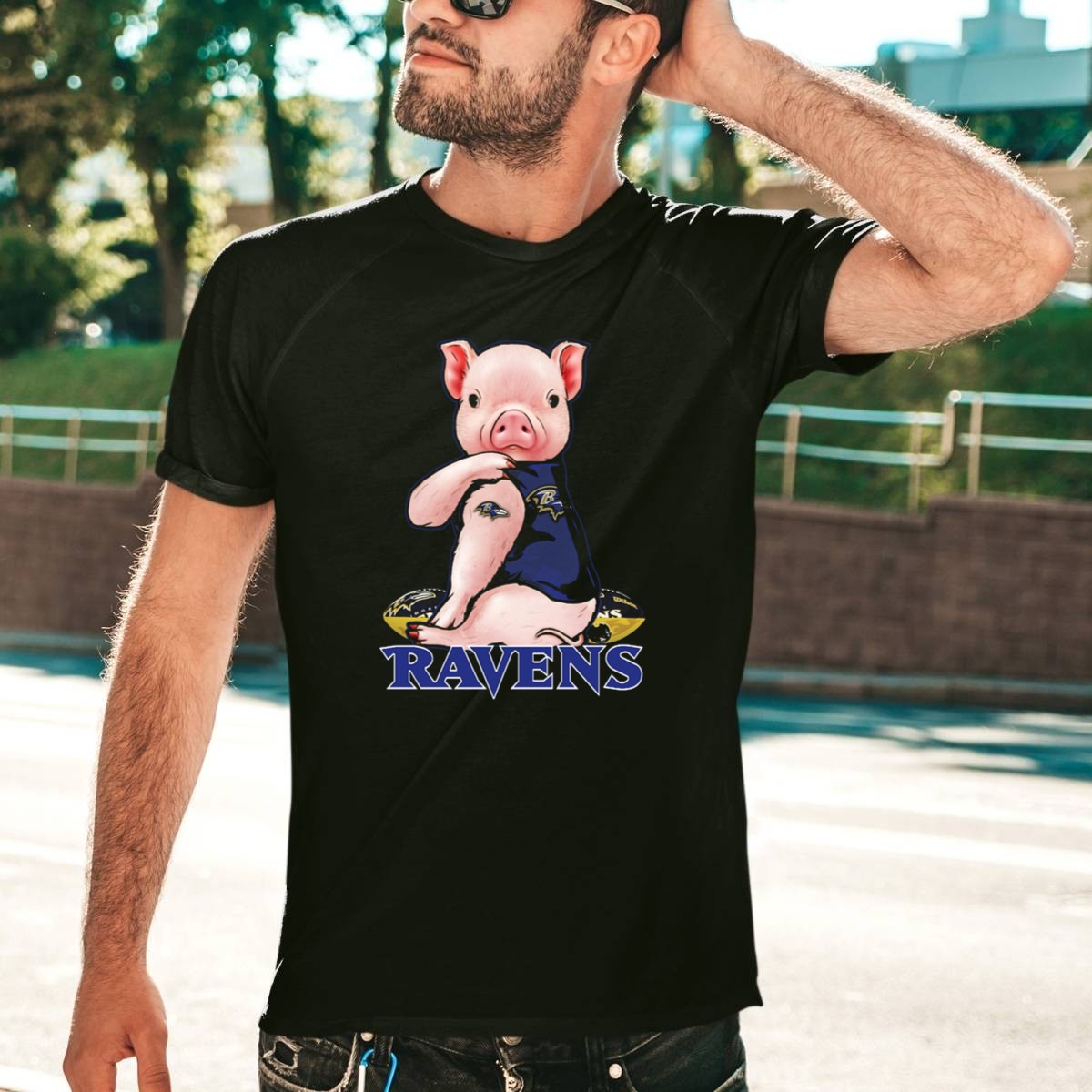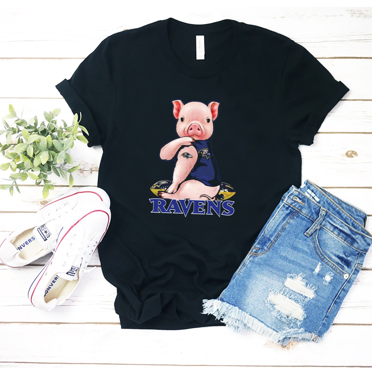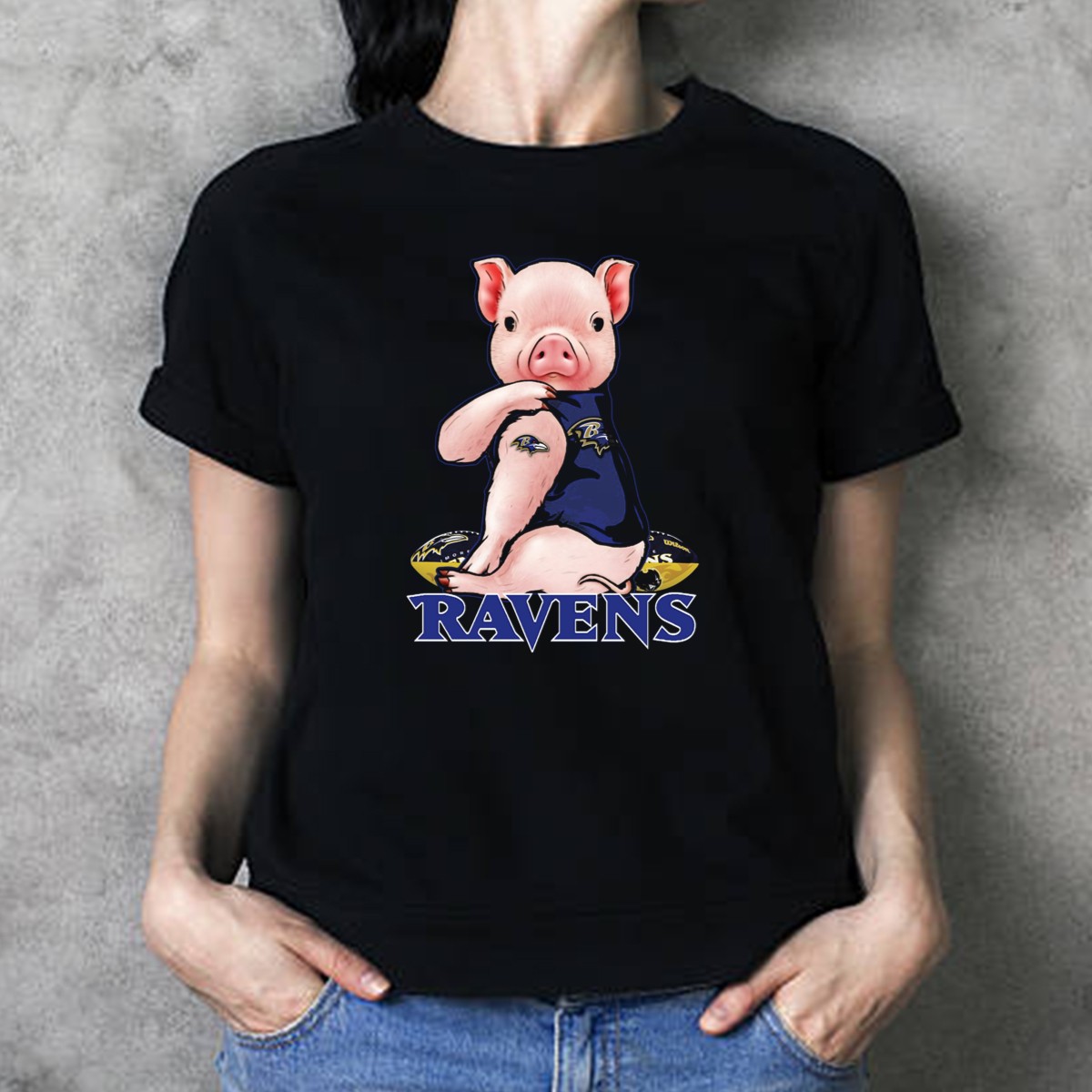 Ravens Pig Mascot With Baltimore Ravens T-Shirt