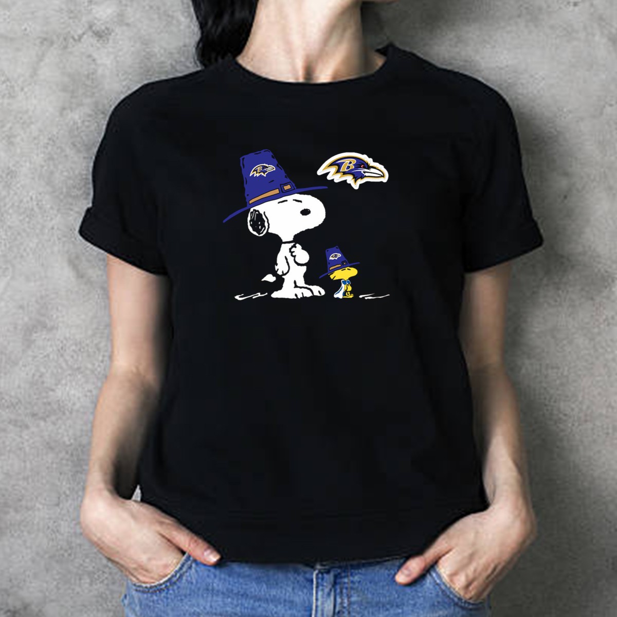 Celebrate your love for the Baltimore Ravens this Thanksgiving with our fan-made Snoopy and Woodstock Pilgrim Hats T-shirt! Perfect for die-hard fans and casual wearers alike, this playful design brings a festive twist to your game day attire. Wear it to themed events, family gatherings, or just around town, and show off your team spirit while staying comfortable and stylish.