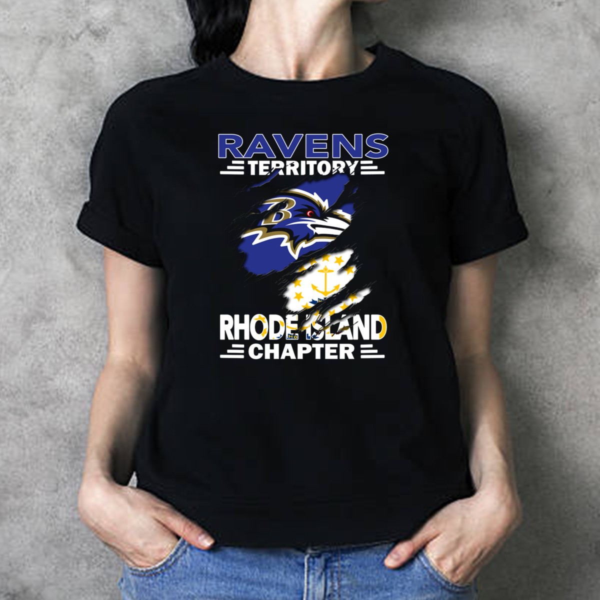 Ravens Territory Rhode Island Chapter Baltimore Ravens Logo and Rhode Island Flag T-Shirt