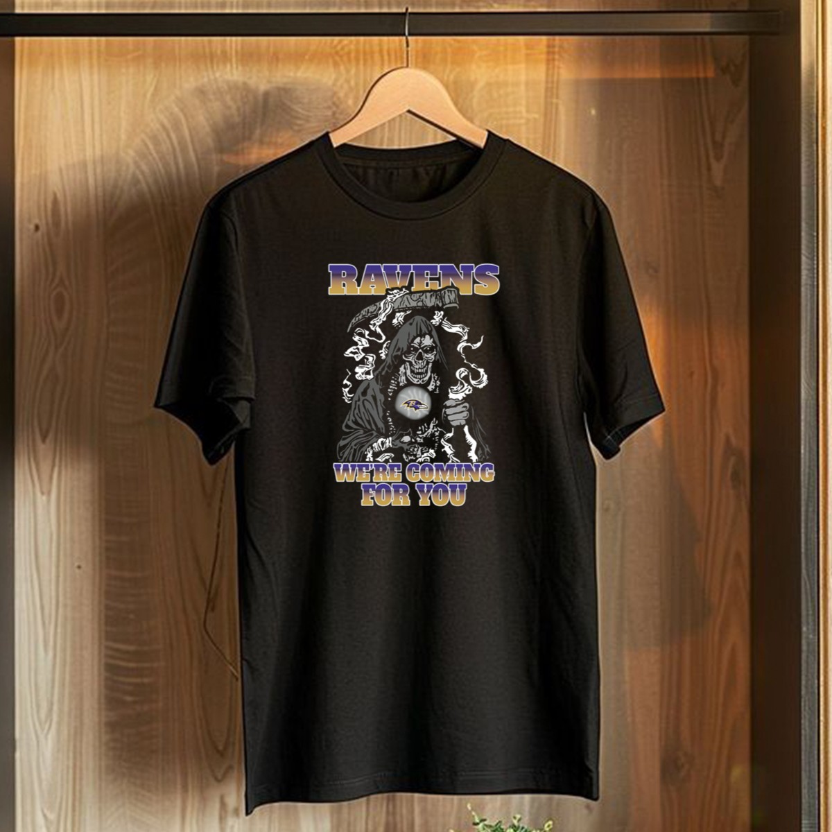 Embrace your team spirit with the Ravens Were Coming For You Baltimore Ravens Grim Reaper T-Shirt! This eye-catching graphic tee is perfect for die-hard Ravens fans who want to showcase their loyalty in style. Whether you’re cheering from the stands at a game, hosting a themed event, or simply enjoying a casual day out, this unique design celebrates the intensity and passion of Ravens football. Made with a soft and breathable fabric, this shirt ensures you’ll stay comfortable while turning heads!