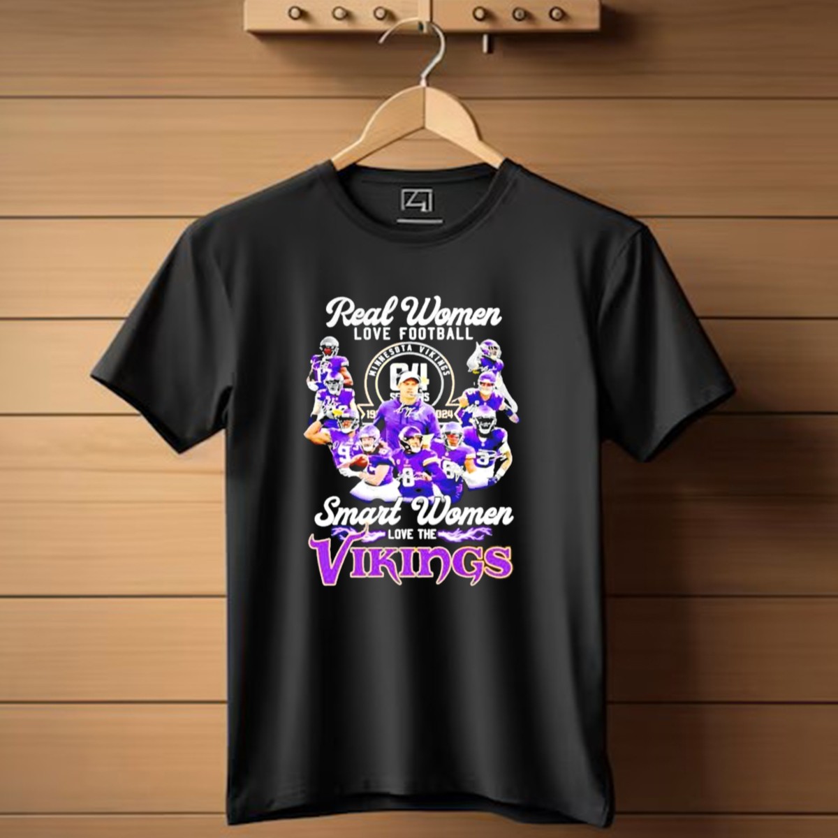 Show your unwavering support for the Minnesota Vikings with our “Real Women Love Football, Smart Women Love the Minnesota Vikings Players Signatures” T-shirt! This fan-made design is perfect for die-hard fans who want to express their passion for the game and team in a stylish way. Whether you’re cheering from the stands, hosting a themed party, or just enjoying a casual day out, this shirt is a fantastic way to showcase your team spirit and love for football.