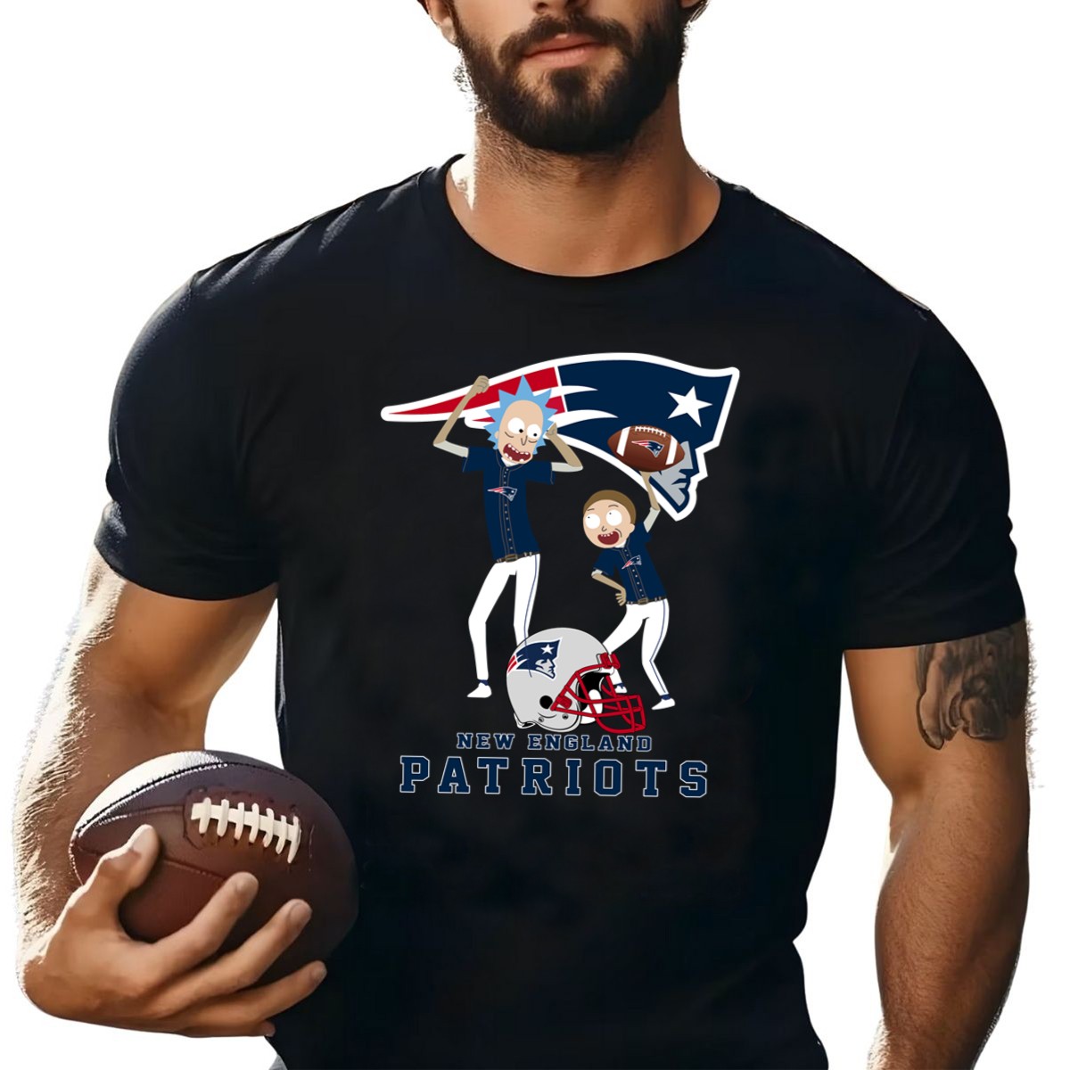 Show your love for both the New England Patriots and the wacky adventures of Rick and Morty with this fan-made graphic T-shirt! Perfect for die-hard fans, this shirt is ideal for casual outings, themed events, or just lounging around at home. Made with a unique design that combines your favorite animated series with your favorite football team, this shirt is a must-have for any true fan looking to express their personality in style.