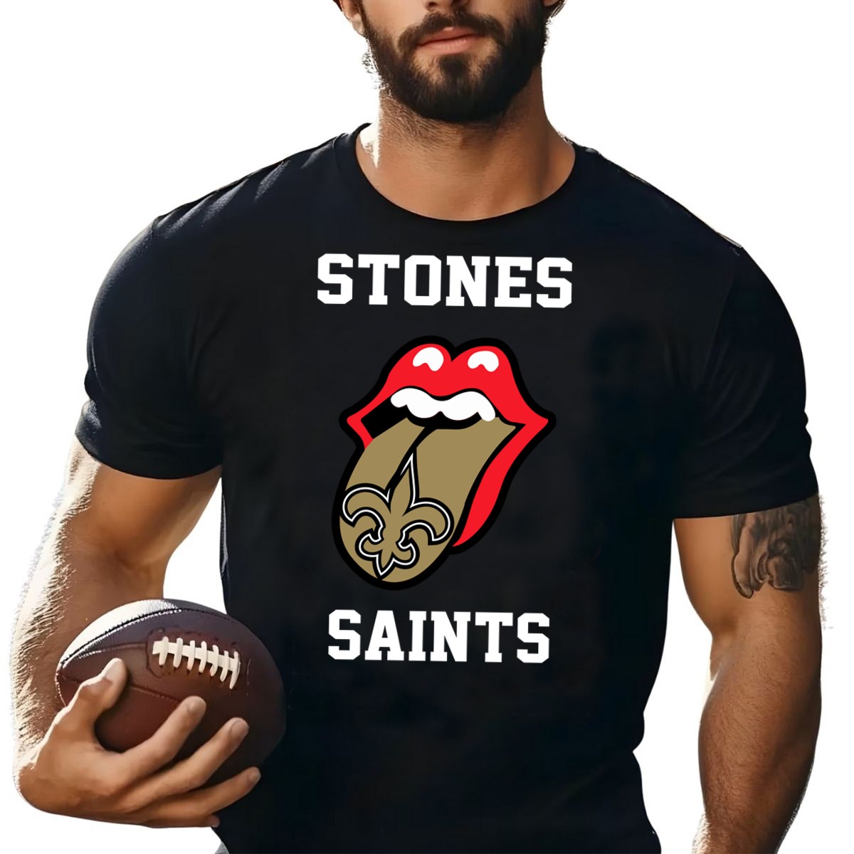Show off your love for both the Rolling Stones and the New Orleans Saints with this unique fan-made graphic T-shirt! Perfect for die-hard fans, this shirt is ideal for casual outings, themed events, or just lounging at home. The iconic design, printed in the USA, brings together two powerful symbols of music and sports, making it a must-have addition to your wardrobe.