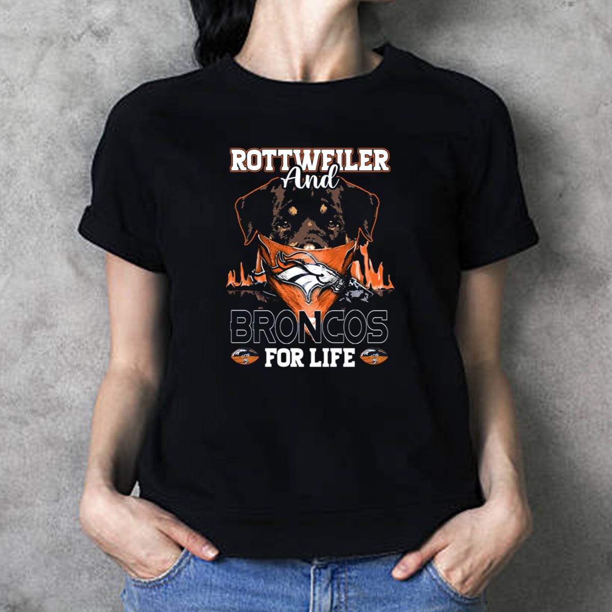Show your love for the Denver Broncos and your fierce loyalty to Rottweilers with this eye-catching graphic printed T-shirt. Perfect for fans who want to showcase their team spirit while celebrating their favorite breed, this shirt is ideal for casual outings, themed events, or simply lounging at home. Made with high-quality materials and featuring a unique fan-made design printed in the USA, it’s a must-have for every Broncos enthusiast who also adores Rottweilers.