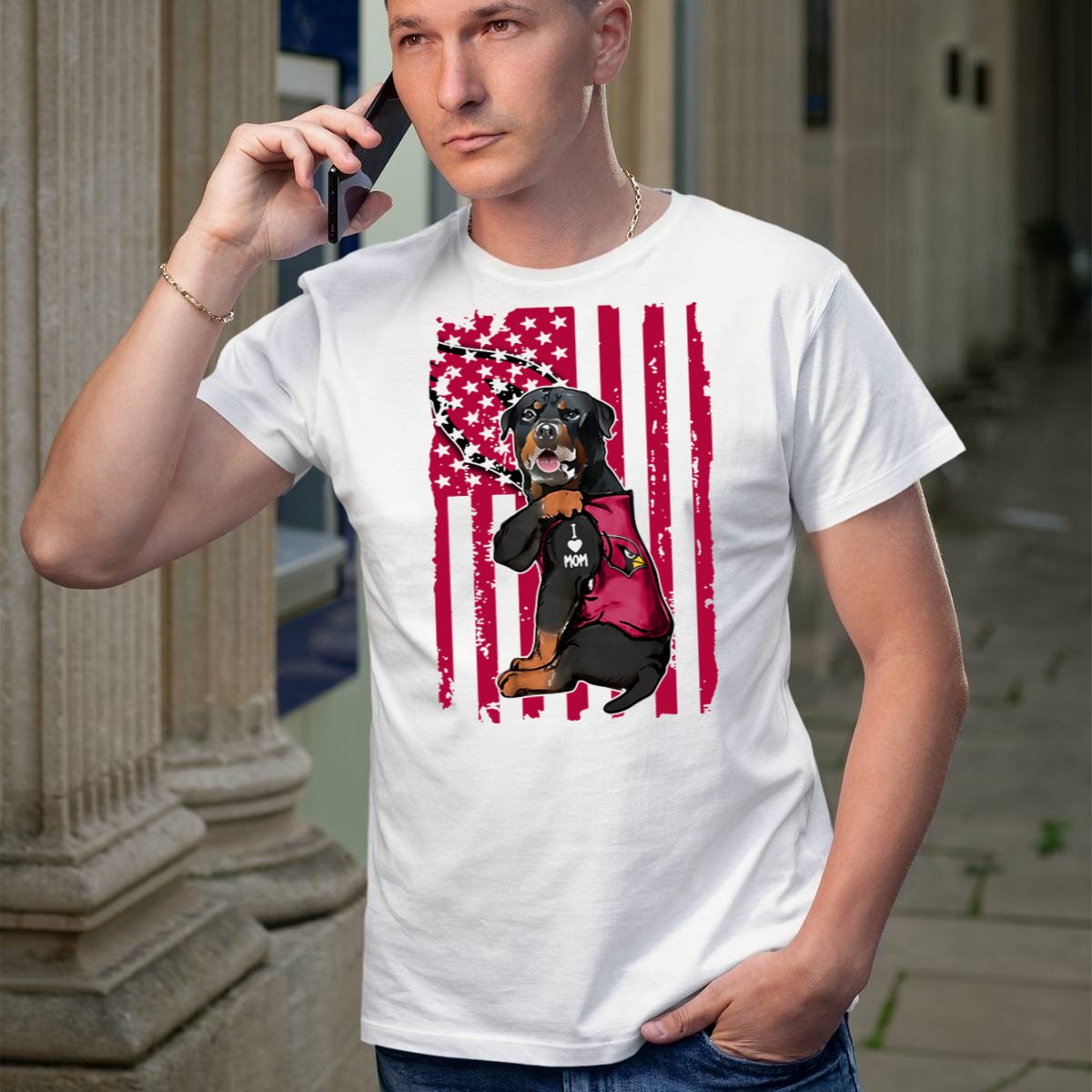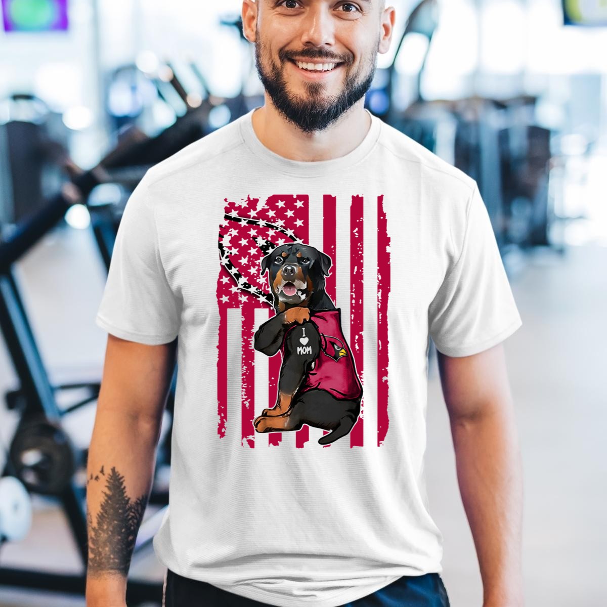 Show your love for both your furry friend and your favorite football team with the Rottweiler I Love Mom Arizona Cardinals USA Flag T-Shirt. Perfect for dog lovers and sports enthusiasts alike, this fan-made design is printed in the USA and captures the spirit of pride for both your pet and your team. Whether you’re cheering from the stands, enjoying a casual day out, or celebrating themed events, this classic tee offers comfort and style for all occasions.
