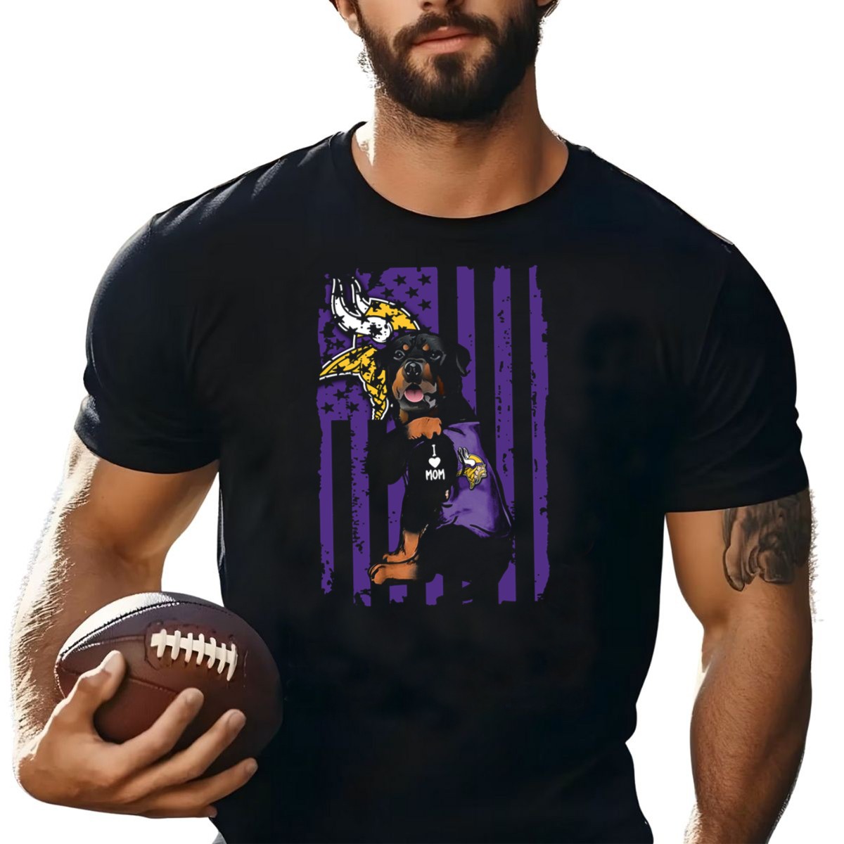 Show off your love for both your furry friend and the Minnesota Vikings with this unique Rottweiler I Love Mom T-shirt! Perfect for dog lovers and Vikings fans alike, this shirt celebrates the bond between pets and their owners. Whether you’re heading to a casual outing, a themed event, or just enjoying daily wear, this fan-made design will make you stand out in style while supporting your favorite team. Printed in the USA, this shirt combines comfort with a heartfelt message.