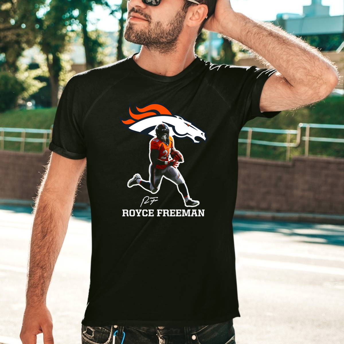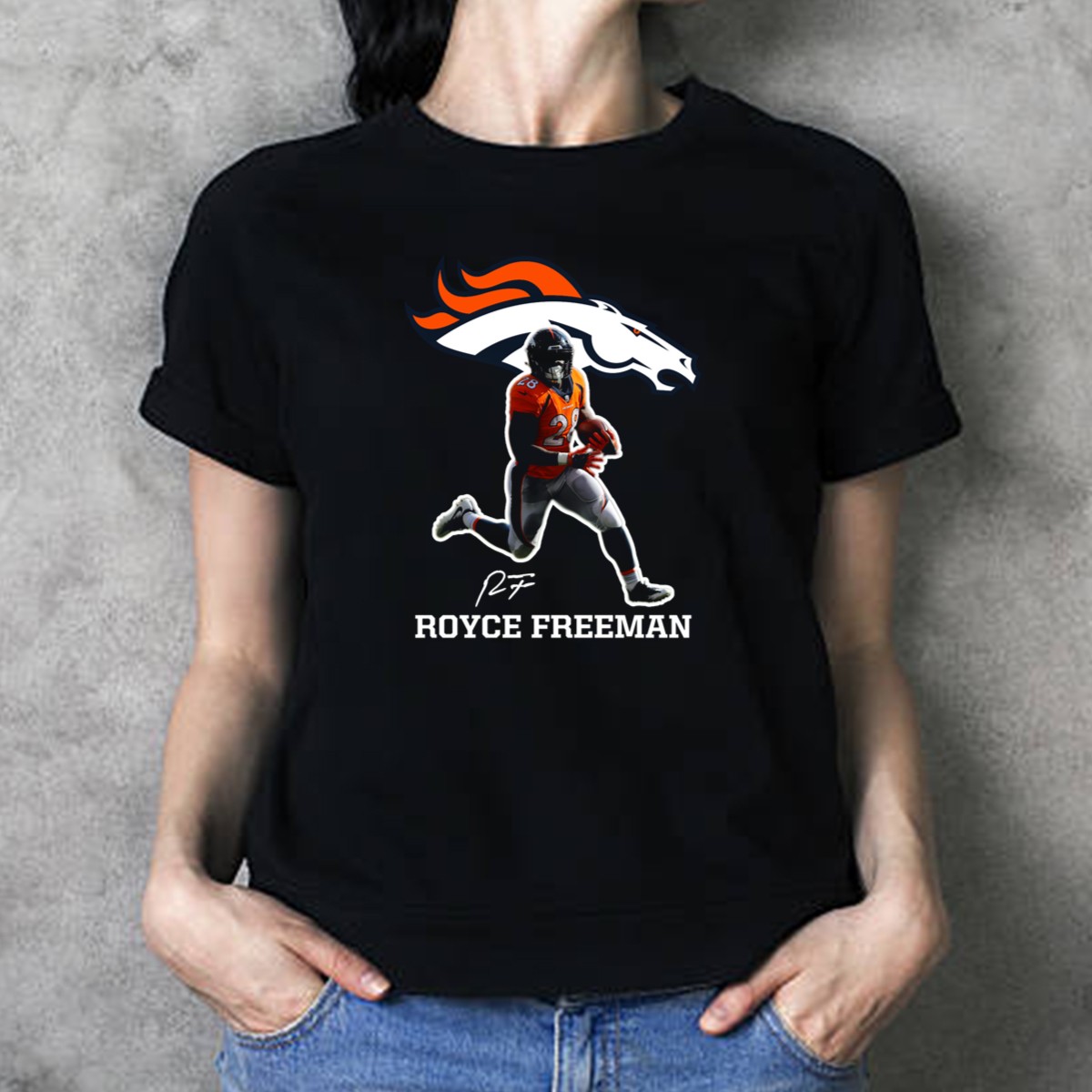 Royce Freeman Denver Broncos Football Player NFL Running Back Signature T-Shirt