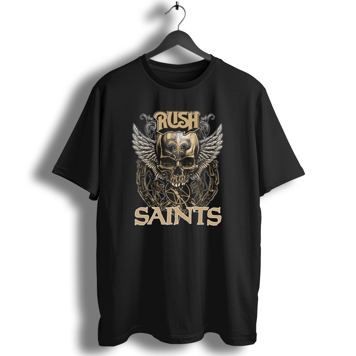 Rush New Orleans Saints Skull With Wings And Chains Fleur De Lis Emblem T Shirt