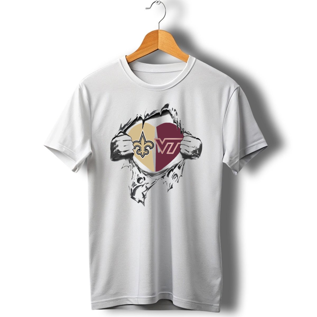Show your love for both the Saints and Hokies with this unique dual heart emblem T-shirt, perfect for fans who embrace their passion for both teams. Crafted for ultimate comfort and style, this shirt is ideal for casual outings, themed events, or simply lounging at home. With a fan-made design printed in the USA, it’s a standout piece that showcases your team spirit wherever you go.
