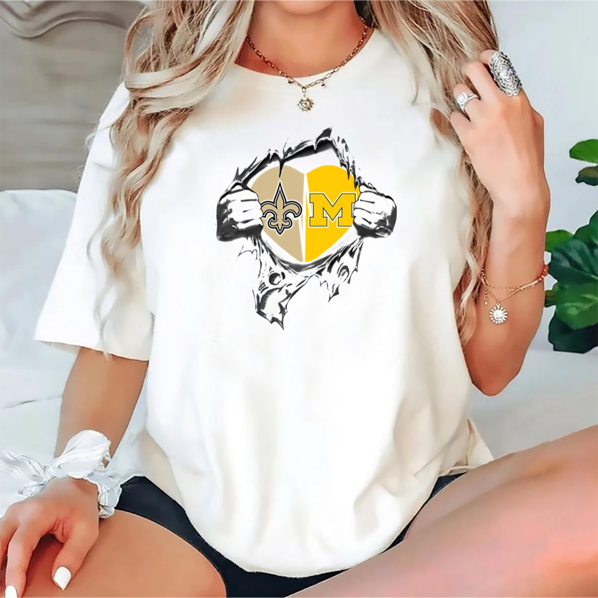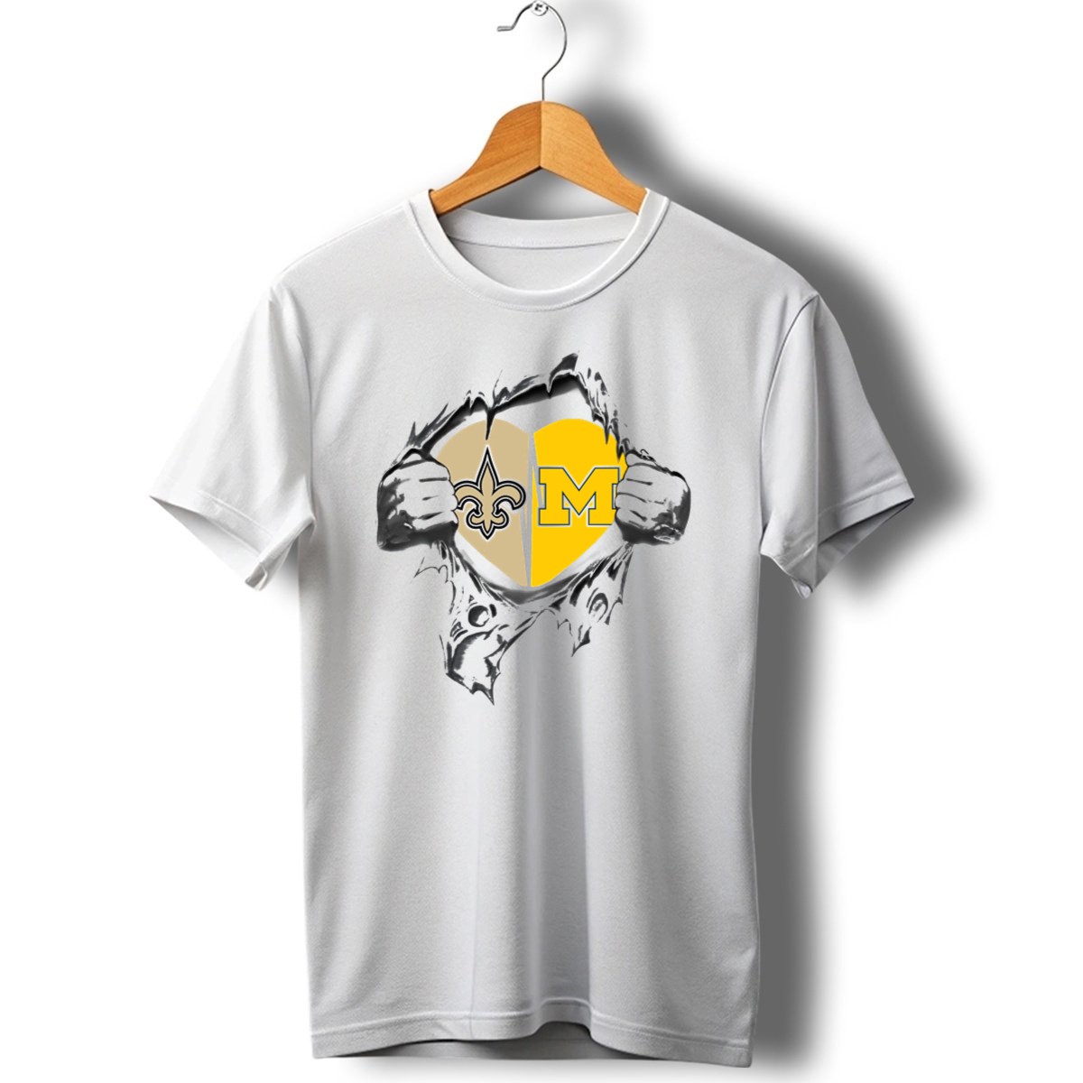 Show your love for both the Saints and Michigan with this unique fan-made graphic T-shirt, designed for the ultimate sports enthusiast. Perfect for casual outings, themed events, or daily wear, this shirt features a striking heart symbol adorned with the iconic Fleur De Lis and Block M, making it a standout piece for anyone who wants to showcase their passion in style. Crafted with comfort in mind, this shirt is both soft and durable, ensuring it will be a favorite in your wardrobe for years to come.