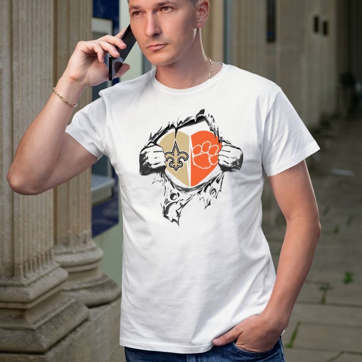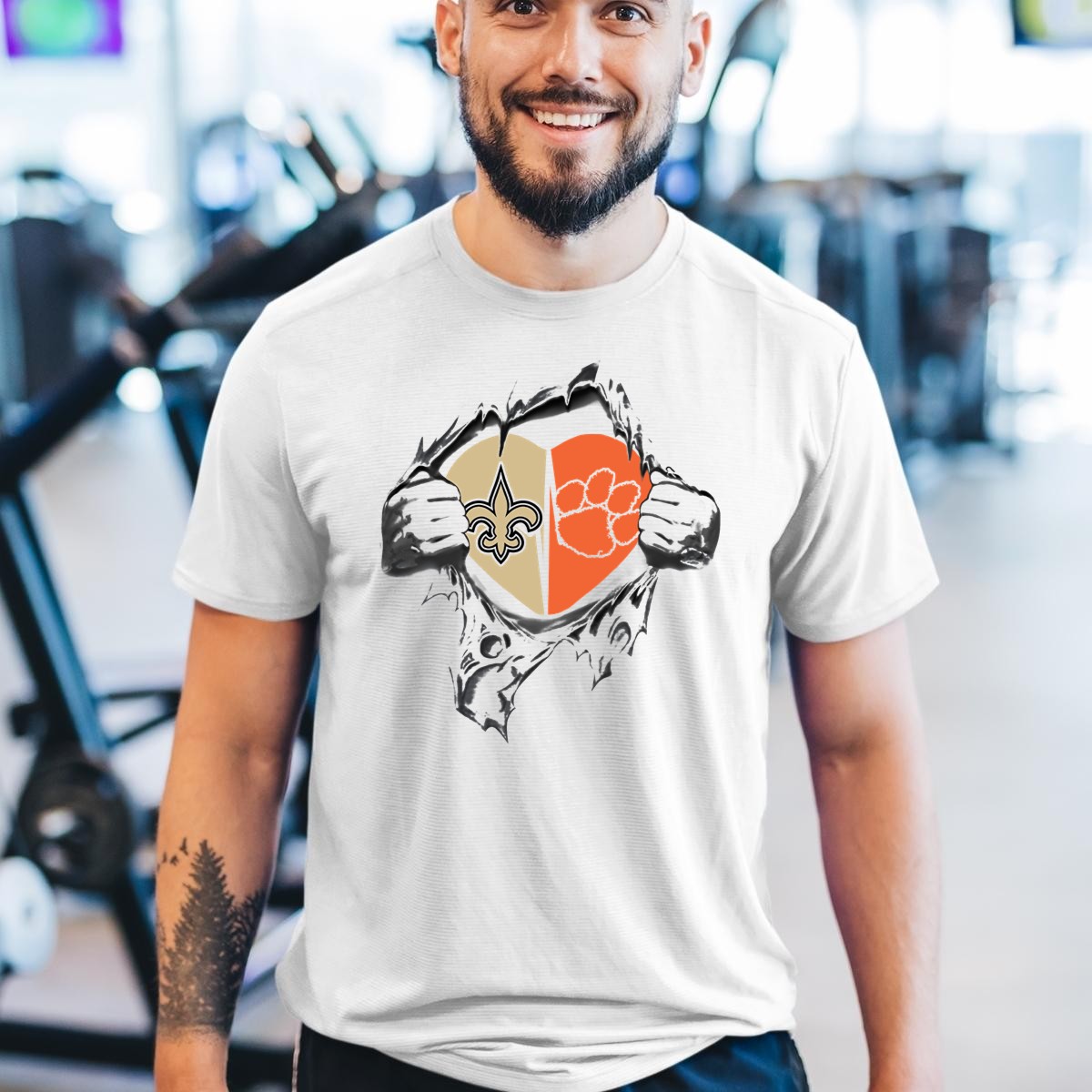 Show your unwavering support for the Clemson Tigers with our Saints Clemson Tigers Heart Design Football T-Shirt! This fan-made graphic tee is perfect for die-hard fans and casual supporters alike. Whether you’re cheering from the stands, enjoying a themed event, or just hanging out with friends, this unique shirt adds a touch of team spirit to any outfit. With its comfortable fit and eye-catching design, it’s a must-have for anyone who loves Clemson football!