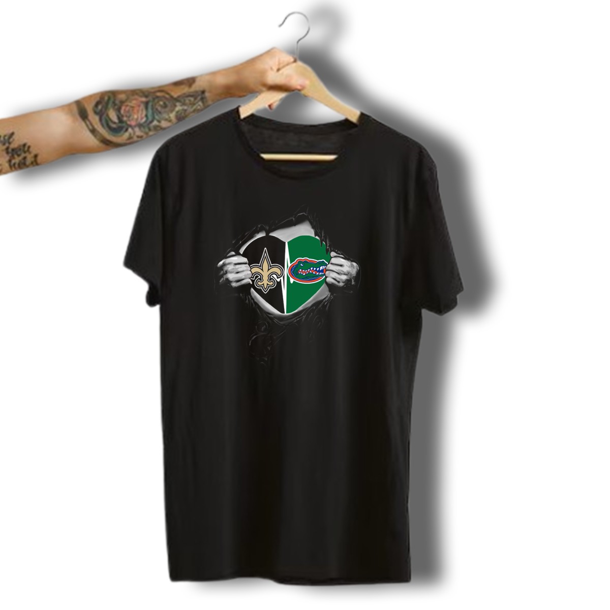 Saints Fleur De Lis And Florida Gators Logo Heart T Shirt