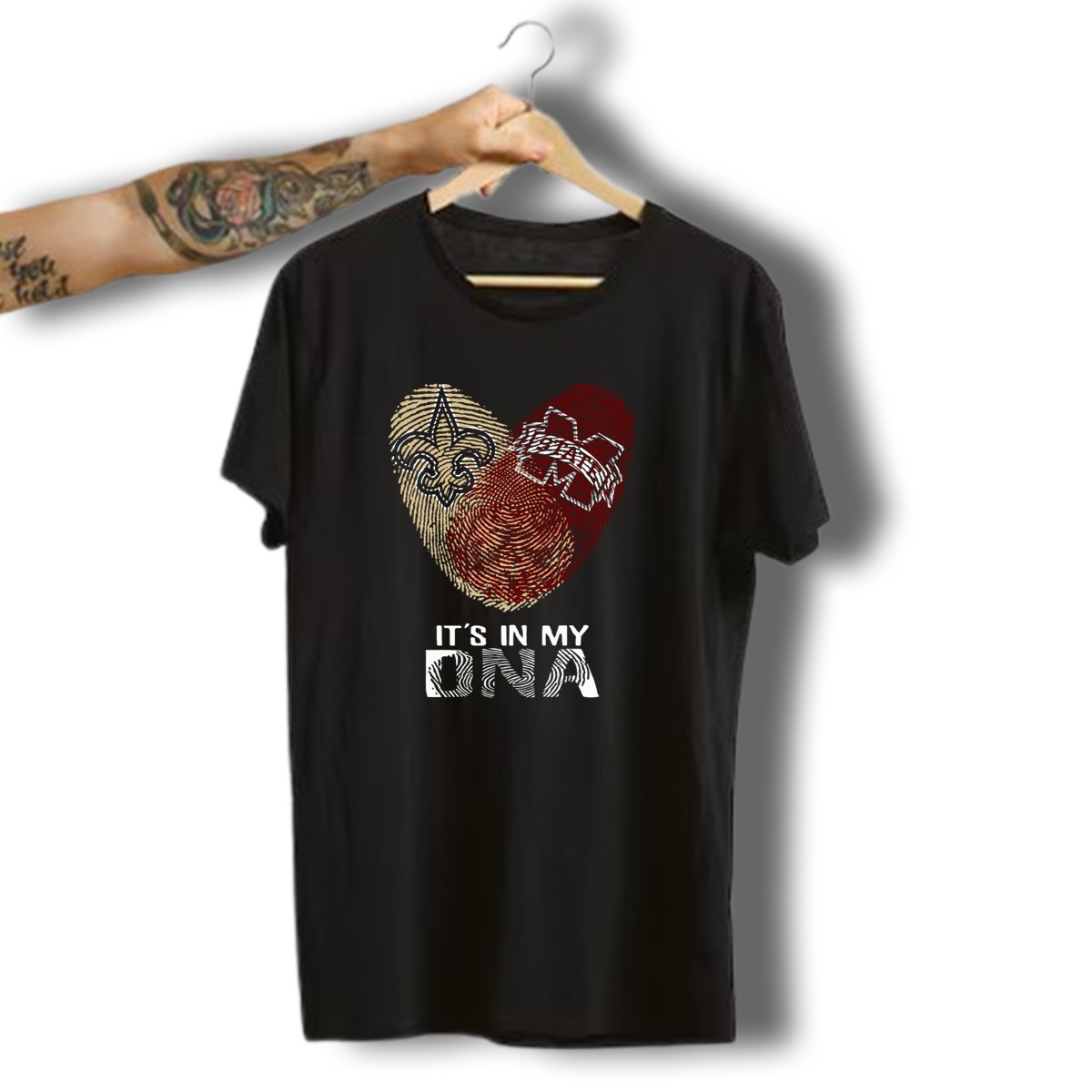 Show your pride for the Saints and Mississippi State with this exclusive “It’s In My DNA” T-shirt. Perfect for fans of all ages, this shirt is ideal for casual outings, themed events, or just lounging at home. Made for comfort and style, this fan-made design celebrates your team spirit and showcases your loyalty in a unique way, printed right here in the USA.