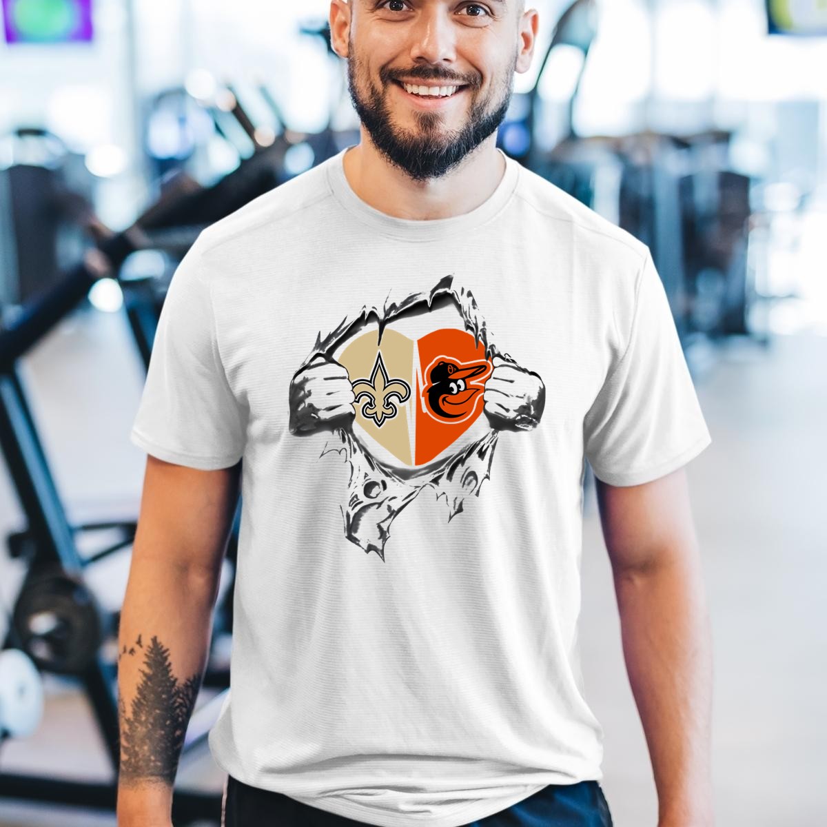 Show your love for the Saints and Orioles with this unique Heart Symbol T-Shirt, perfect for fans of all ages! Made for casual wear, themed events, or simply expressing your team spirit in your daily life, this shirt combines comfort and style. The fan-made design is proudly printed in the USA, ensuring you stand out while supporting your favorite teams.