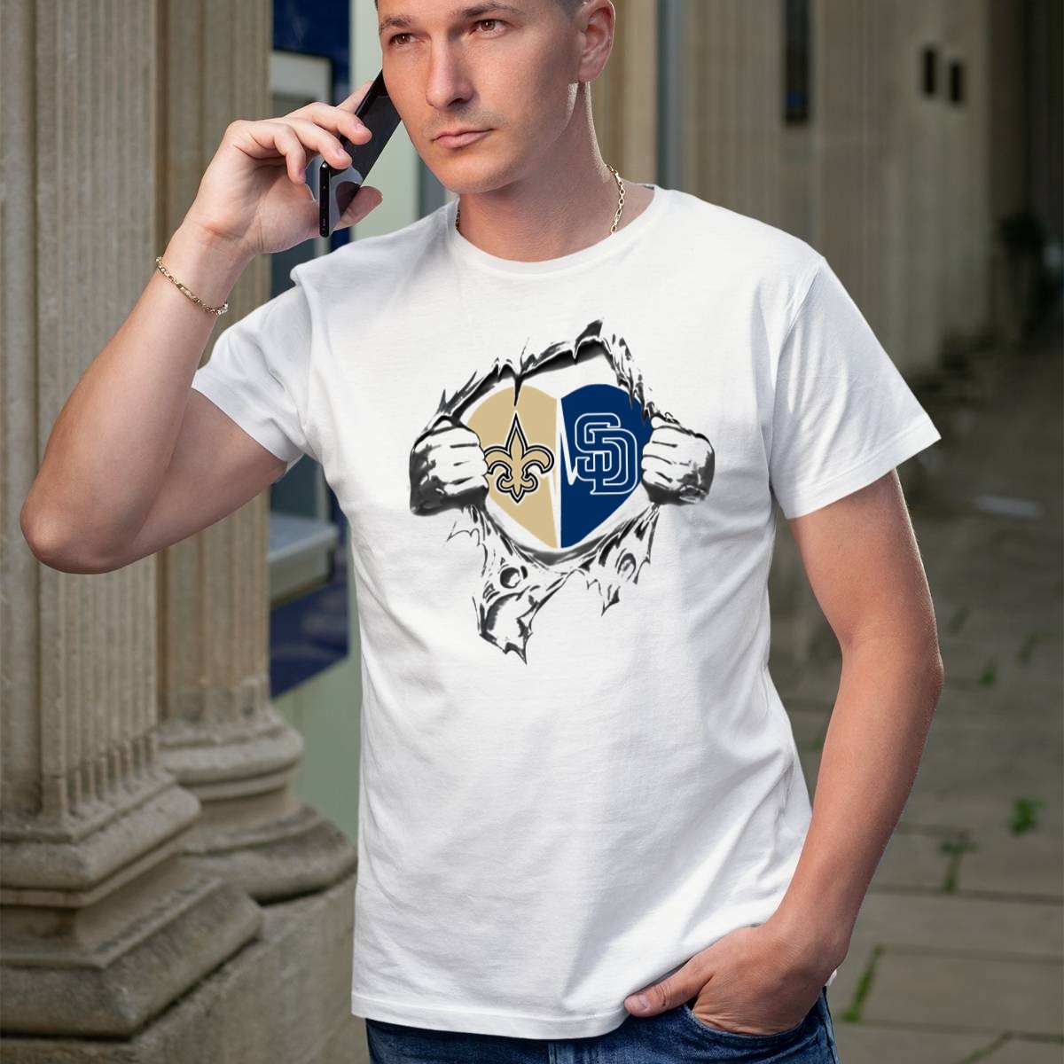Show your team spirit with the Saints Padres Heart Icon Fleur De Lis and Interlocked SD T-Shirt! This fan-made design is perfect for die-hard supporters and casual wearers alike. Whether you’re cheering from the stands, attending themed events, or just hanging out with friends, this shirt combines comfort and style, making it a must-have for any occasion. Proudly printed in the USA, it showcases your love for the game and your unique style.