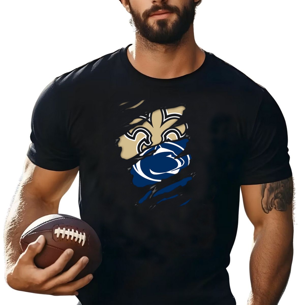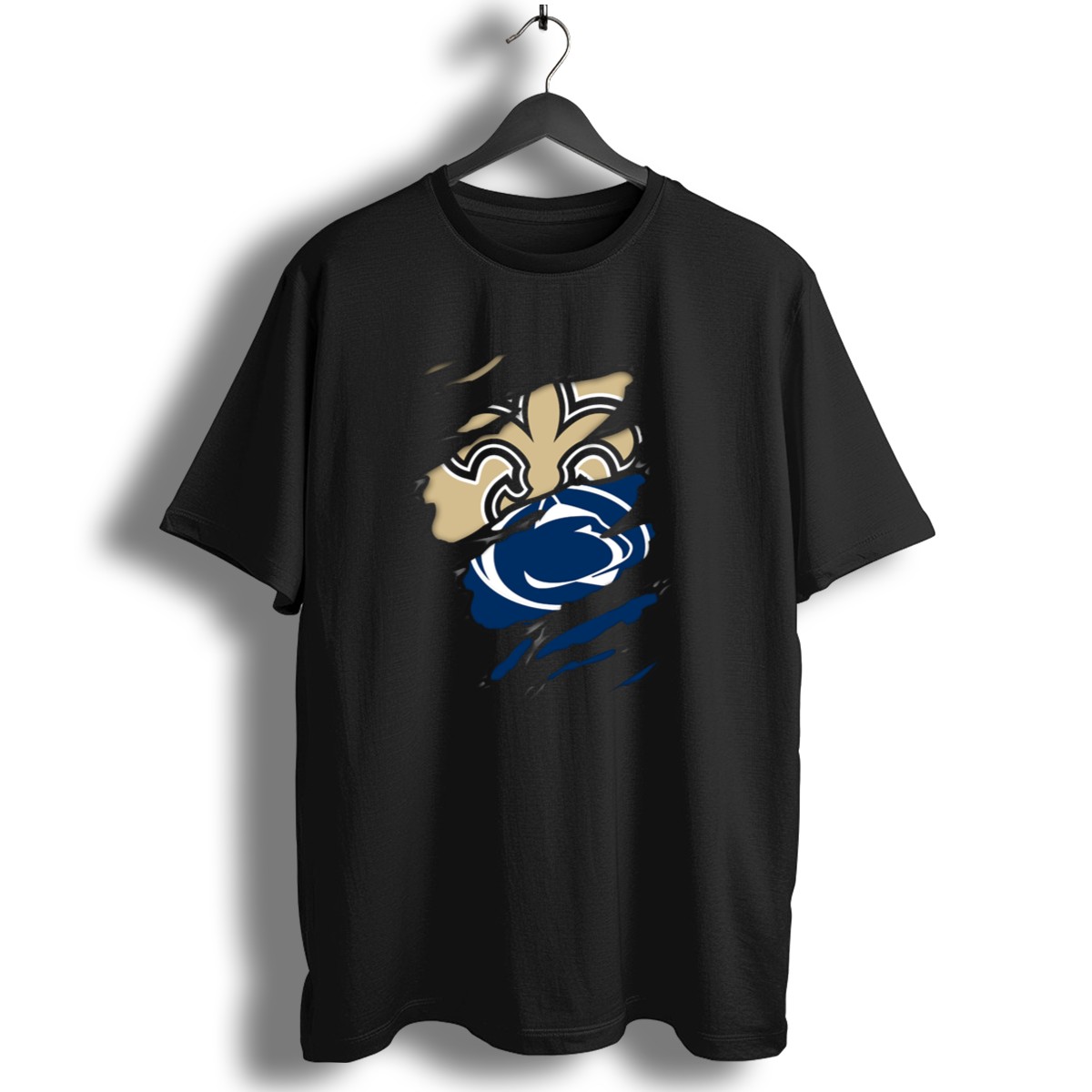 Show off your pride for Penn State with our Saints Penn State Crossover Symbol Claw Marks T-shirt! This fan-made design is perfect for passionate supporters who want to stand out at games, themed events, or casual outings. Crafted for comfort and style, this shirt is a must-have for any true fan looking to express their team spirit in a unique way!