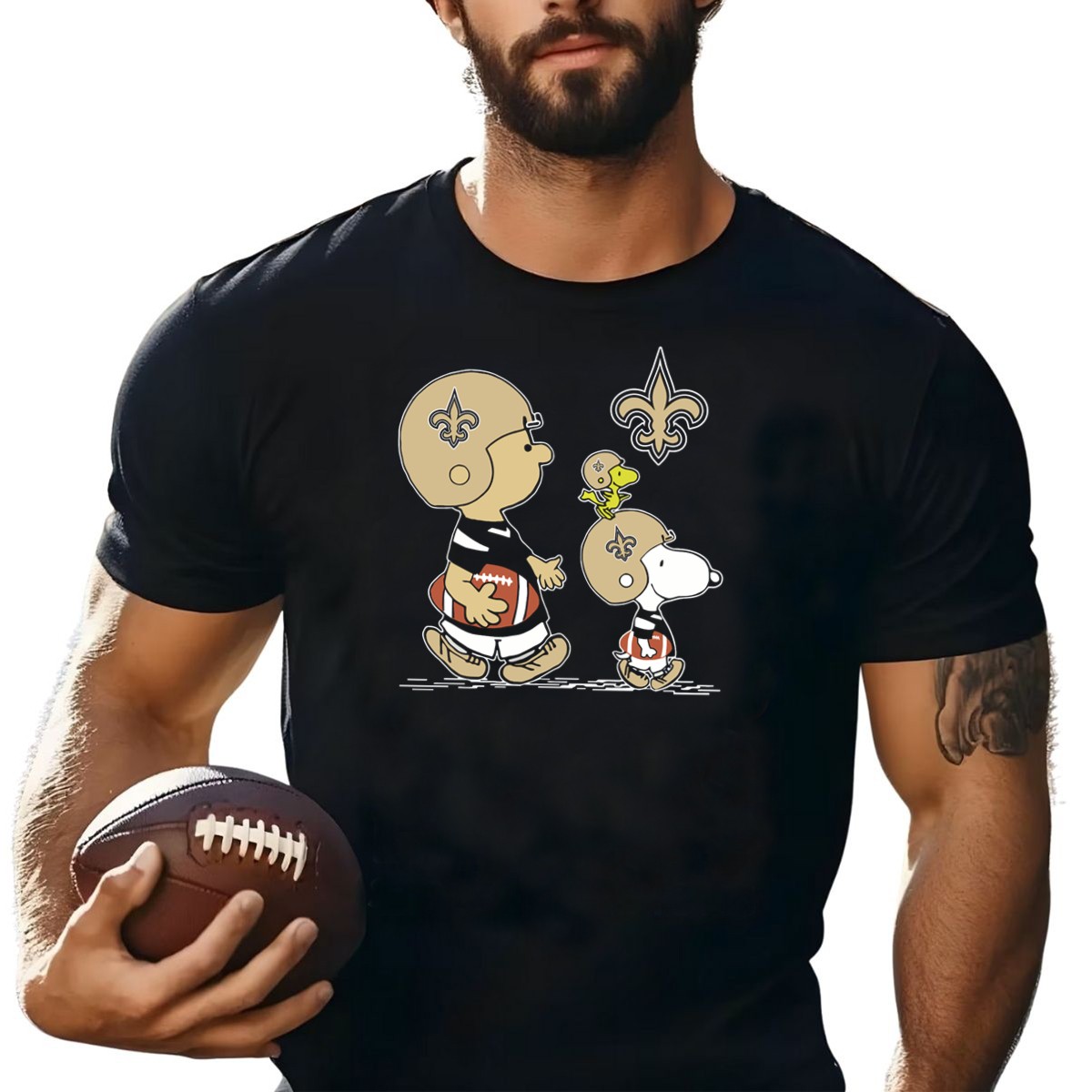 Celebrate your love for football and the beloved Peanuts gang with our Saints Snoopy Peanuts Football T-Shirt! This fan-made design features Snoopy, Charlie Brown, and Woodstock in a playful homage to the New Orleans Saints, making it perfect for die-hard fans and casual wearers alike. Whether you’re heading to a game, a themed event, or just enjoying a relaxed day out, this shirt ensures you’ll stand out in style while showcasing your team spirit.