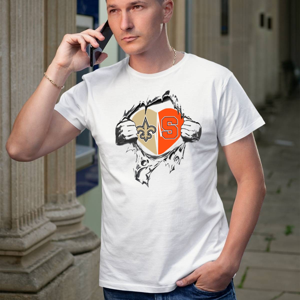 Show your love for the Saints and Syracuse with this stylish Heart Fleur De Lis S Icon T-Shirt! Perfect for fans of all ages, this shirt is designed for casual wear, themed events, or simply showcasing your pride in your favorite teams. Crafted with a unique fan-made design printed in the USA, it combines comfort and style, making it a standout piece in your wardrobe.