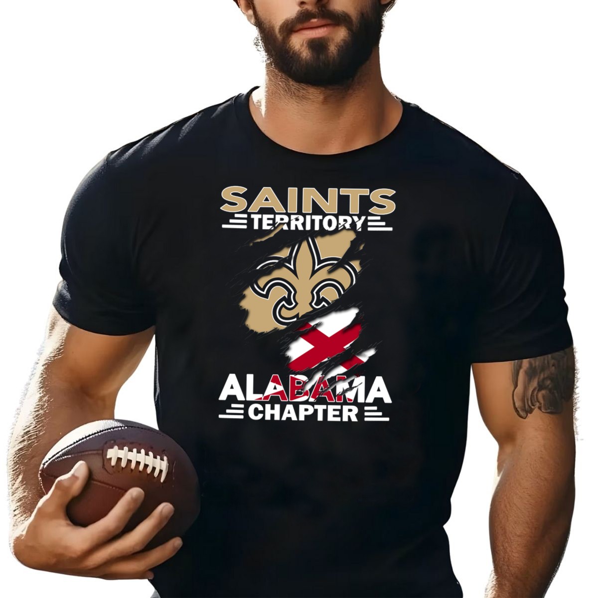 Show your pride with the Saints Territory Alabama Chapter Fleur De Lis And Cross Flag T-Shirt, a perfect blend of style and comfort for fans looking to represent their team. This unisex tee is ideal for casual outings, themed events, or simply lounging at home. Crafted with a fan-made design that celebrates your love for the Saints, it’s printed right here in the USA, making it a unique addition to your wardrobe.