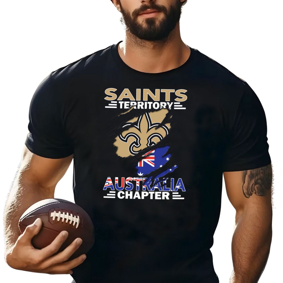 Show your pride and passion for the Saints Territory with this eye-catching Fleur De Lis Australia Chapter Flag T-Shirt. Perfect for fans of all ages, this T-shirt is designed for casual outings, themed events, or just daily wear. Its unique fan-made design, proudly printed in the USA, makes it a standout piece that celebrates your love for the team in style. Whether you’re at a game or hanging out with friends, this shirt ensures you do it with flair.