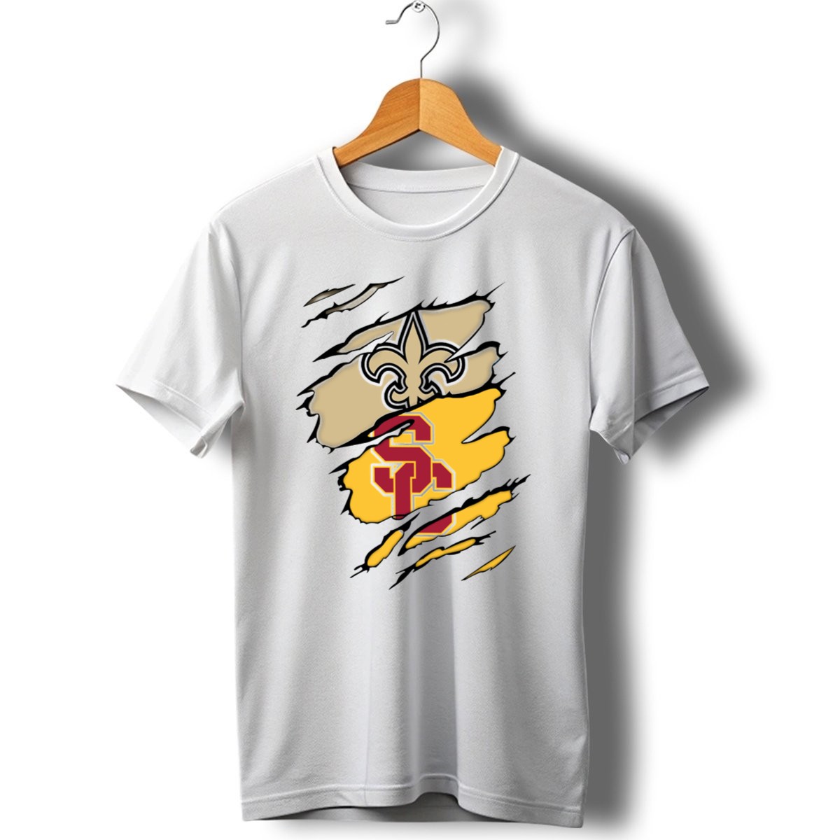 Show your pride for the Saints Trojans with this unique fan-made T-shirt that combines the iconic USC Fleur De Lis logo. Perfect for dedicated fans and casual wearers alike, this shirt is ideal for themed events, game days, or simply lounging around. Crafted for comfort and style, it’s a must-have addition to any wardrobe, celebrating your team spirit in a fashionable way.