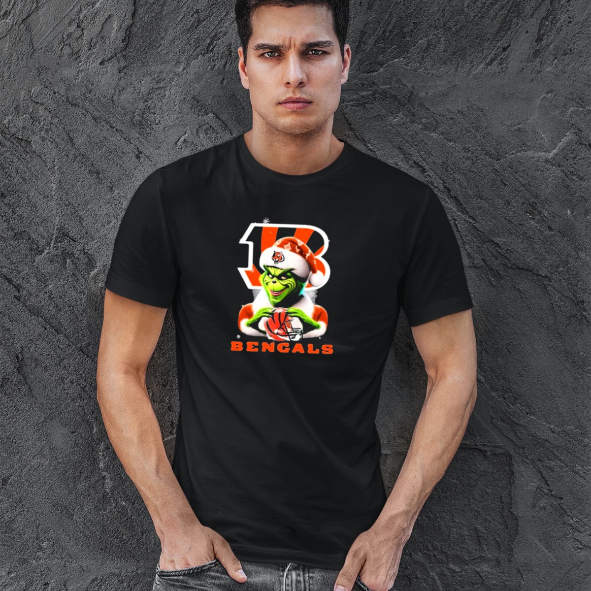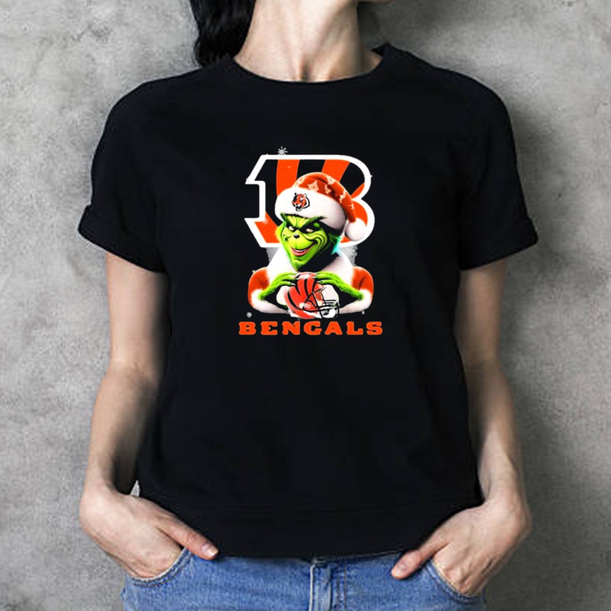 Get ready to spread some holiday cheer with our Santa Grinch Cincinnati Bengals Christmas Football T-Shirt! Perfect for Bengals fans who love celebrating the season in style, this shirt blends festive spirit with team pride. Whether you’re attending a holiday gathering, watching the game with friends, or just enjoying a casual day out, this unique fan-made design adds a playful touch to your outfit. Printed in the USA, this shirt is not only fun but also made from high-quality materials for lasting comfort.
