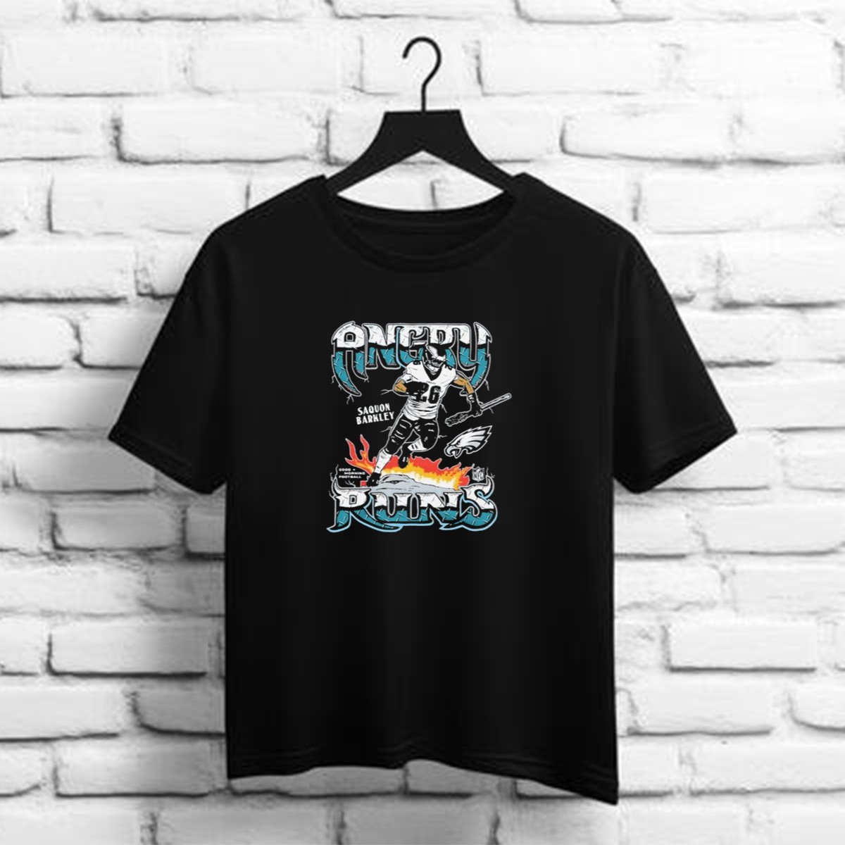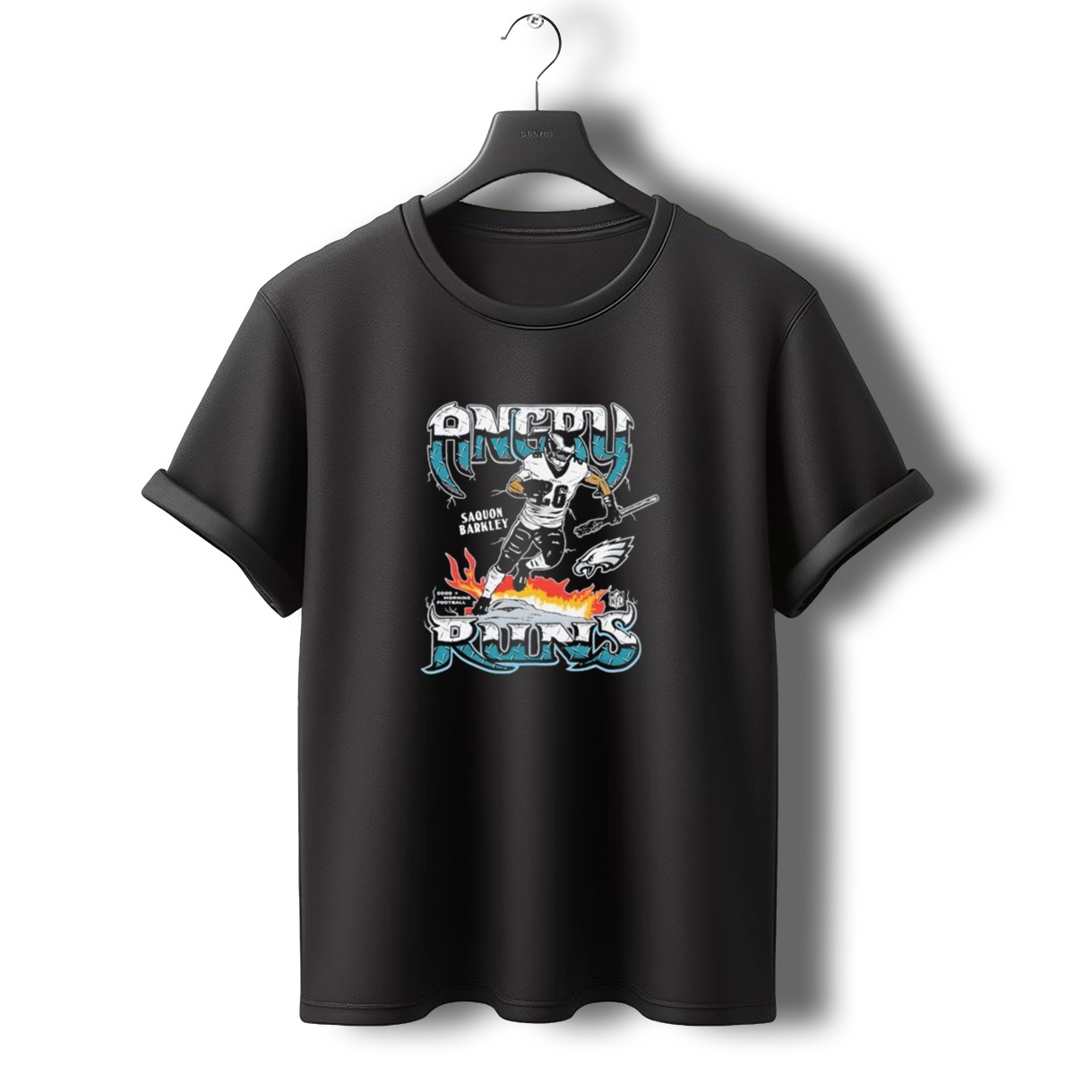 Show your love for Saquon Barkley and the Philadelphia Eagles with this eye-catching “Angry Runs” T-shirt! Perfect for die-hard fans and casual wearers alike, this shirt captures the spirit of game day and adds a fun twist to your daily wardrobe. Made for those who appreciate both style and comfort, it’s an ideal choice for themed events, tailgates, or simply cheering on your team from the couch. With its unique fan-made design proudly printed in the USA, you’ll stand out while showcasing your team pride.