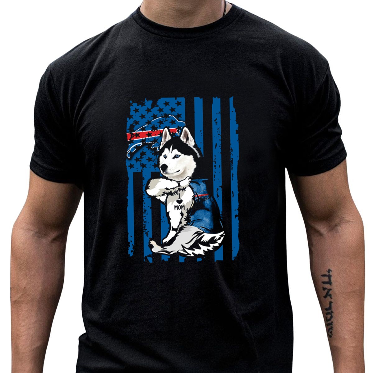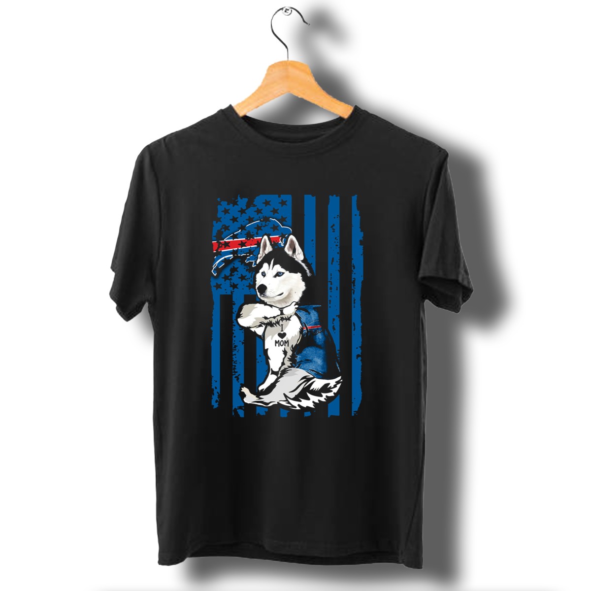 Siberian Husky Mom Buffalo Bills Blue Stars American Flag T-Shirt