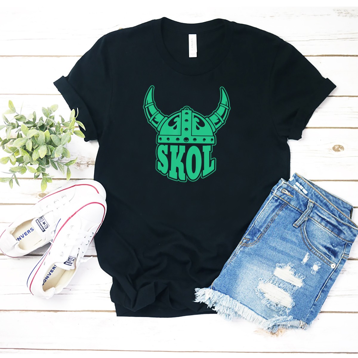 Celebrate your inner warrior with our Skol Viking Helmet Nordic Symbols T-Shirt! This fan-made design is perfect for history buffs and Viking enthusiasts alike. Whether you’re attending a themed event, enjoying a casual day out, or just embracing your love for Norse mythology, this shirt is a fantastic addition to your wardrobe. Printed in the USA, it combines a striking design with comfort and durability, making it a unique statement piece for every occasion.