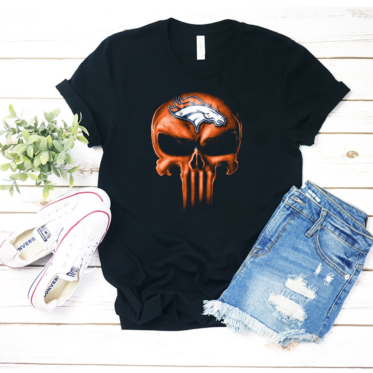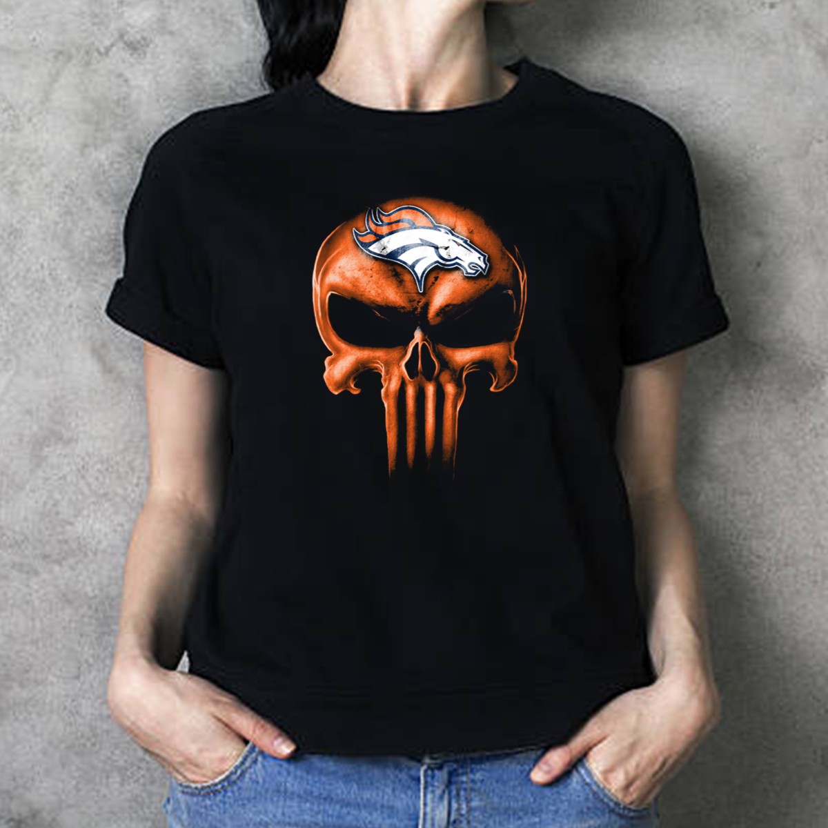 Show your love for both the Denver Broncos and edgy style with our Skull Denver Broncos Logo Fusion T-Shirt. This unique fan-made design combines the fierce spirit of a skull with the iconic Broncos logo, making it perfect for die-hard fans who want to stand out. Ideal for casual outings, themed events, or just daily wear, this shirt is a must-have for anyone looking to showcase their team pride in a bold and fashionable way.