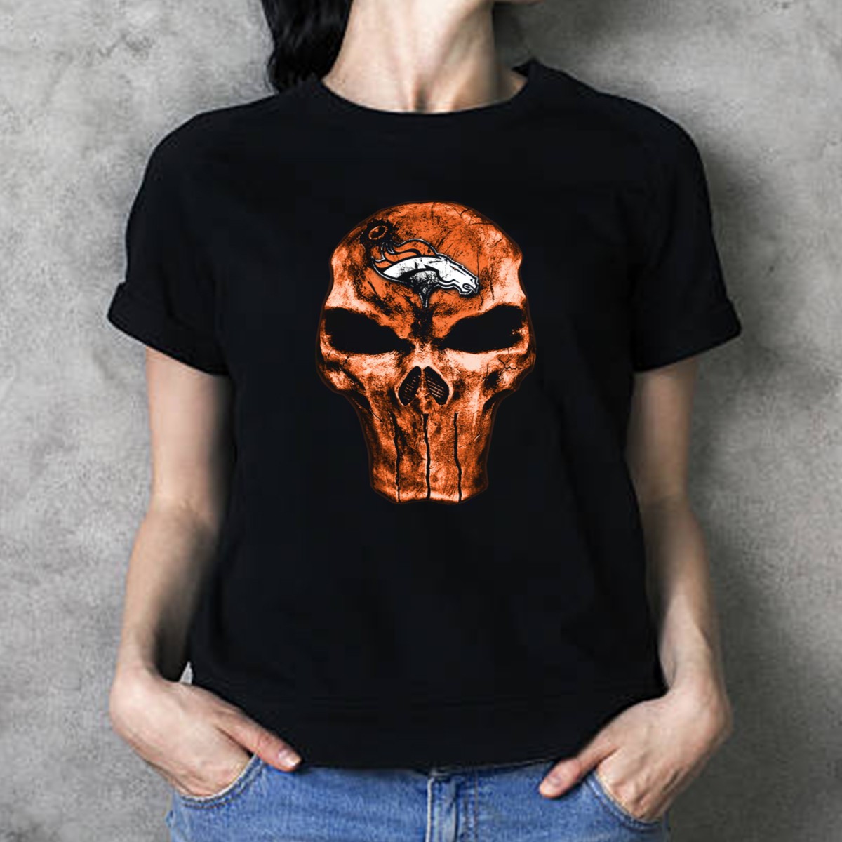 Show off your team spirit with our Skull Denver Broncos Logo T-Shirt, perfect for fans who want to make a bold statement. This eye-catching design combines your love for the Broncos with a unique skull motif, making it an ideal choice for casual outings, themed events, or everyday wear. Made with comfort and style in mind, this shirt is perfect for any die-hard fan looking to showcase their allegiance in a standout way.