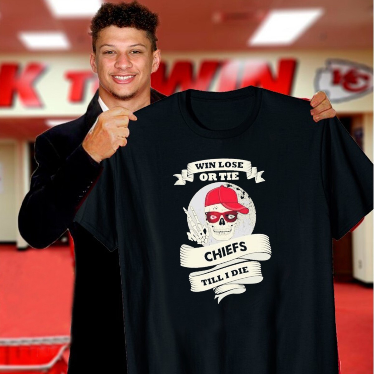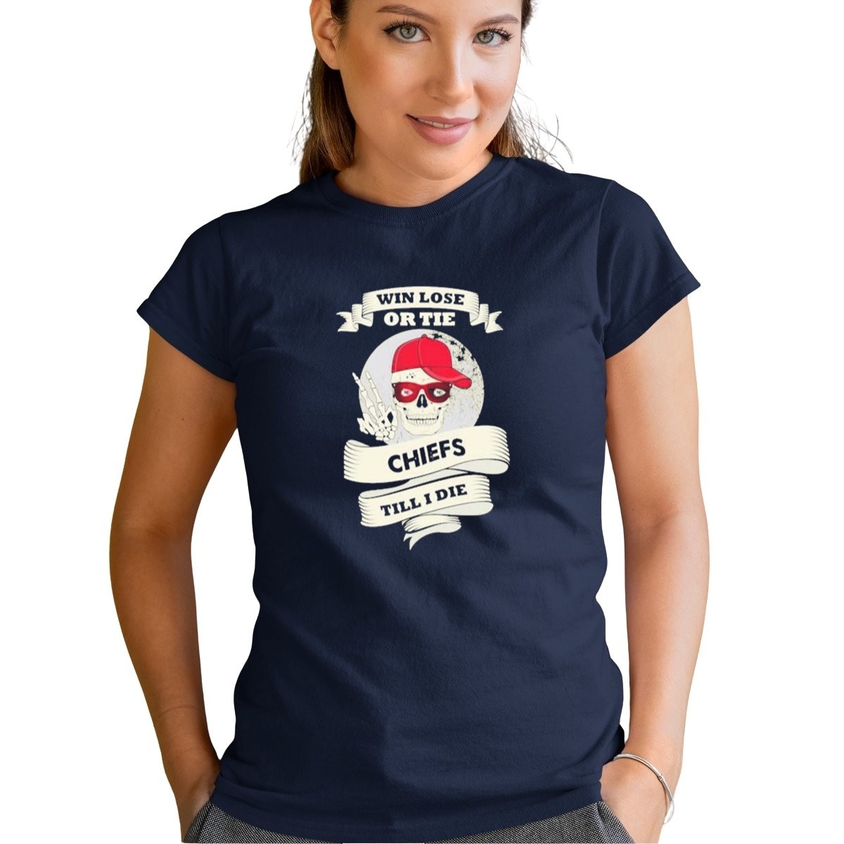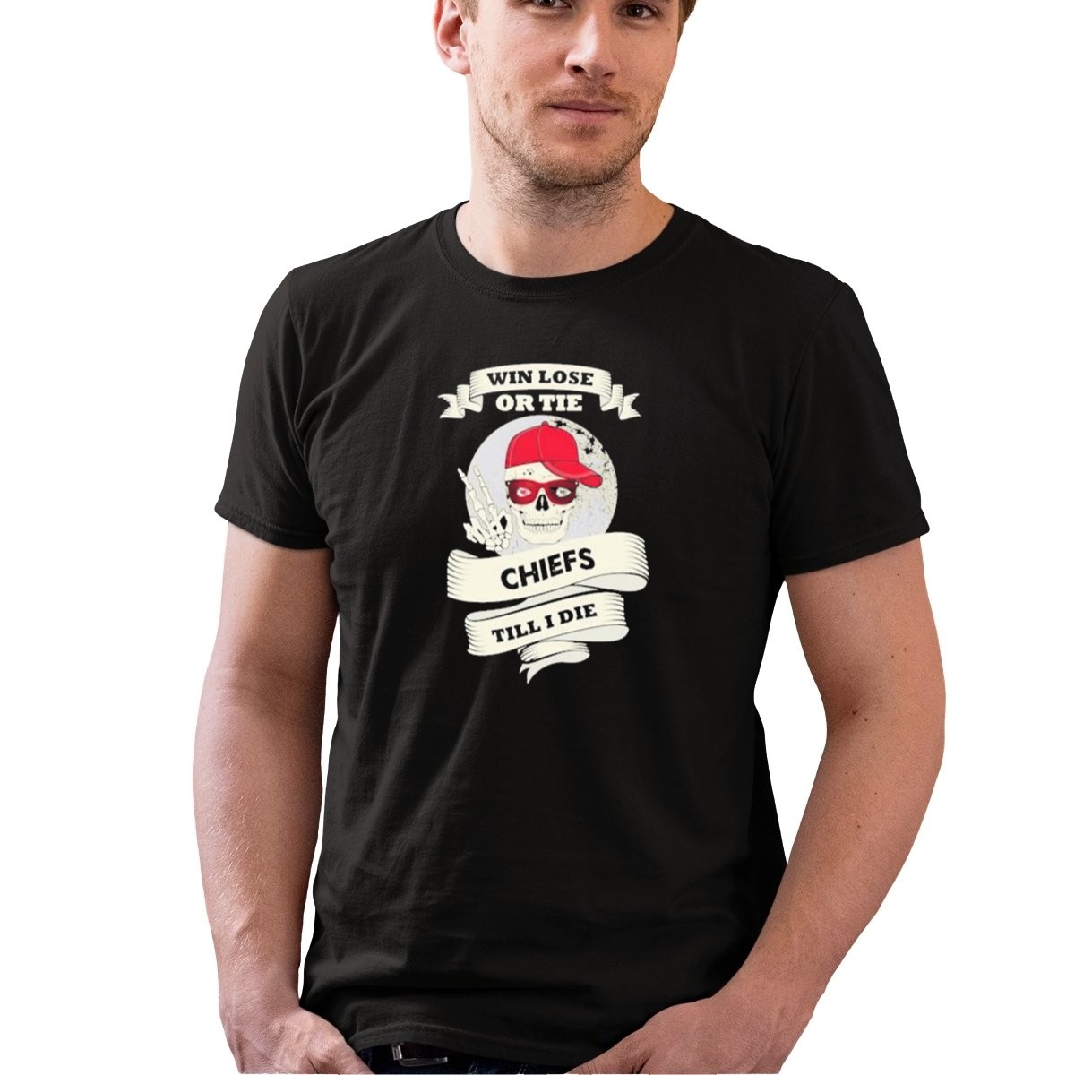 Show off your unwavering support for the Kansas City Chiefs with this fan-made “Win Lose Or Tie Chiefs Till I Die” T-shirt! Perfect for die-hard fans of all ages, this graphic tee is ideal for casual outings, themed events, or simply cheering on your favorite team from the comfort of your home. Made for comfort and style, it features a unique design that celebrates the spirit of Chiefs fandom while ensuring you look great no matter the occasion.