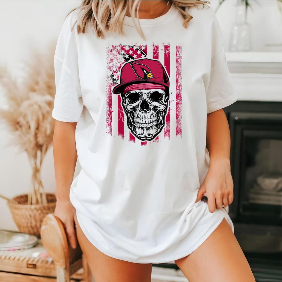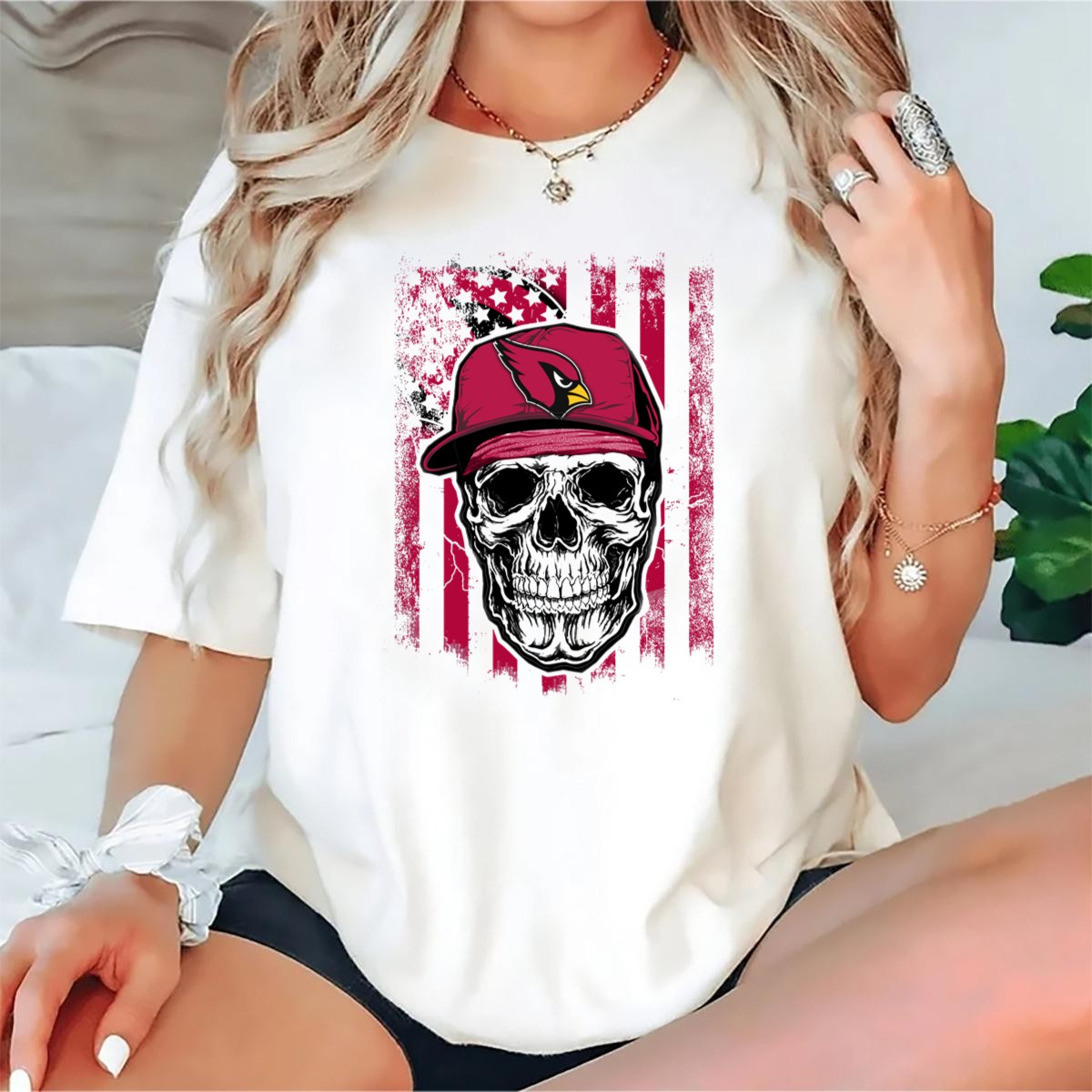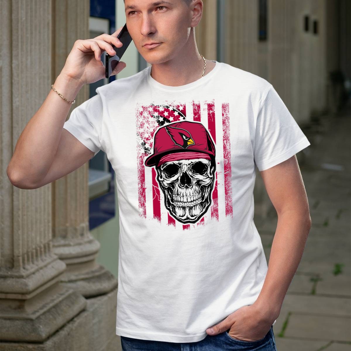 Show off your team spirit in style with the Skull V1 Arizona Cardinals Red Cap American Flag T-Shirt! This fan-made design combines the fierce passion of the Arizona Cardinals with the bold imagery of the American flag, making it a perfect choice for die-hard fans and casual wear alike. Crafted from 100% cotton for unmatched comfort and breathability, this T-shirt is ideal for game days, themed events, or simply showcasing your pride in your team. Whether you’re at the stadium or hanging out with friends, this shirt is sure to turn heads and spark conversations.