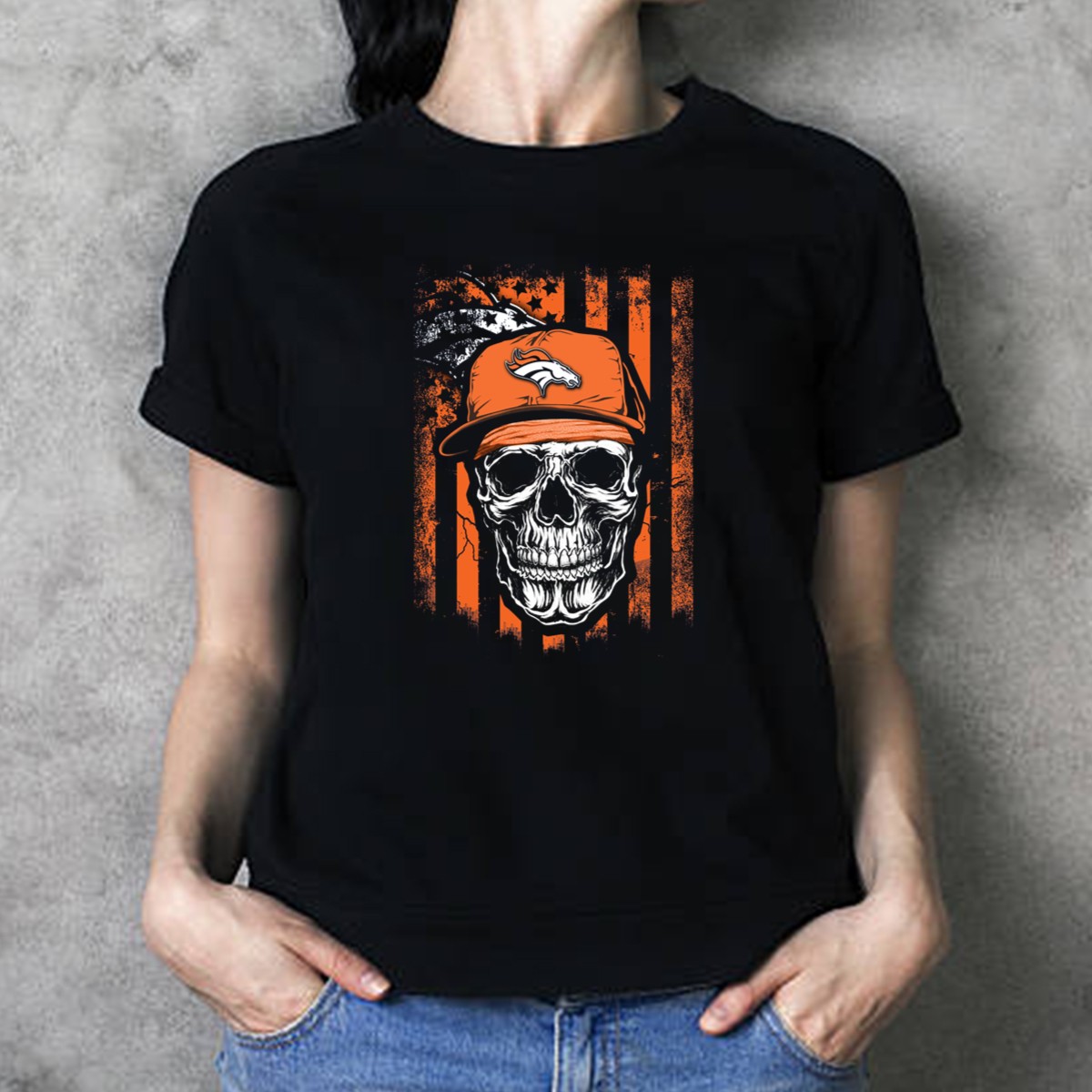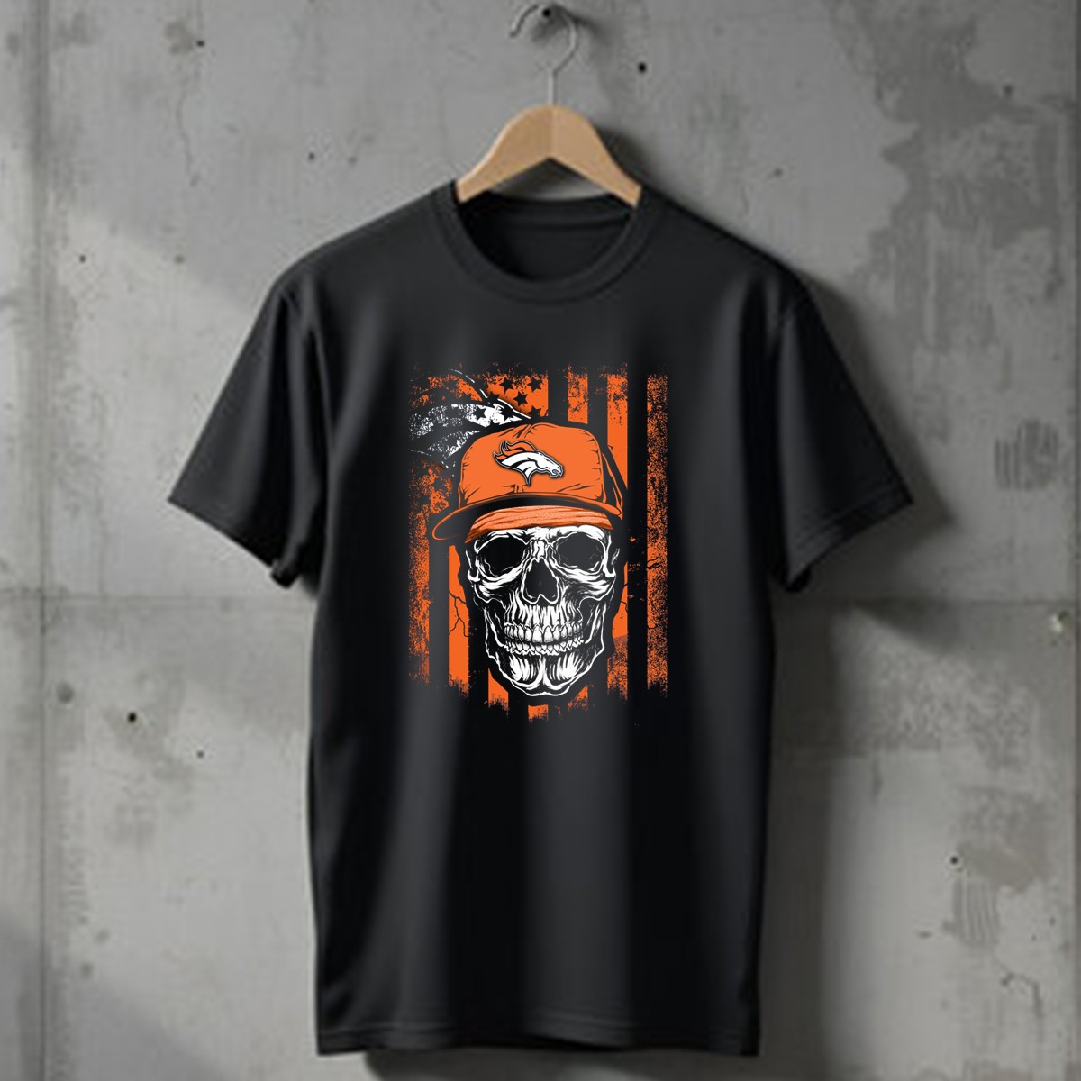 Skull V1 Denver Broncos Flag Style Football Skull Cap T-Shirt