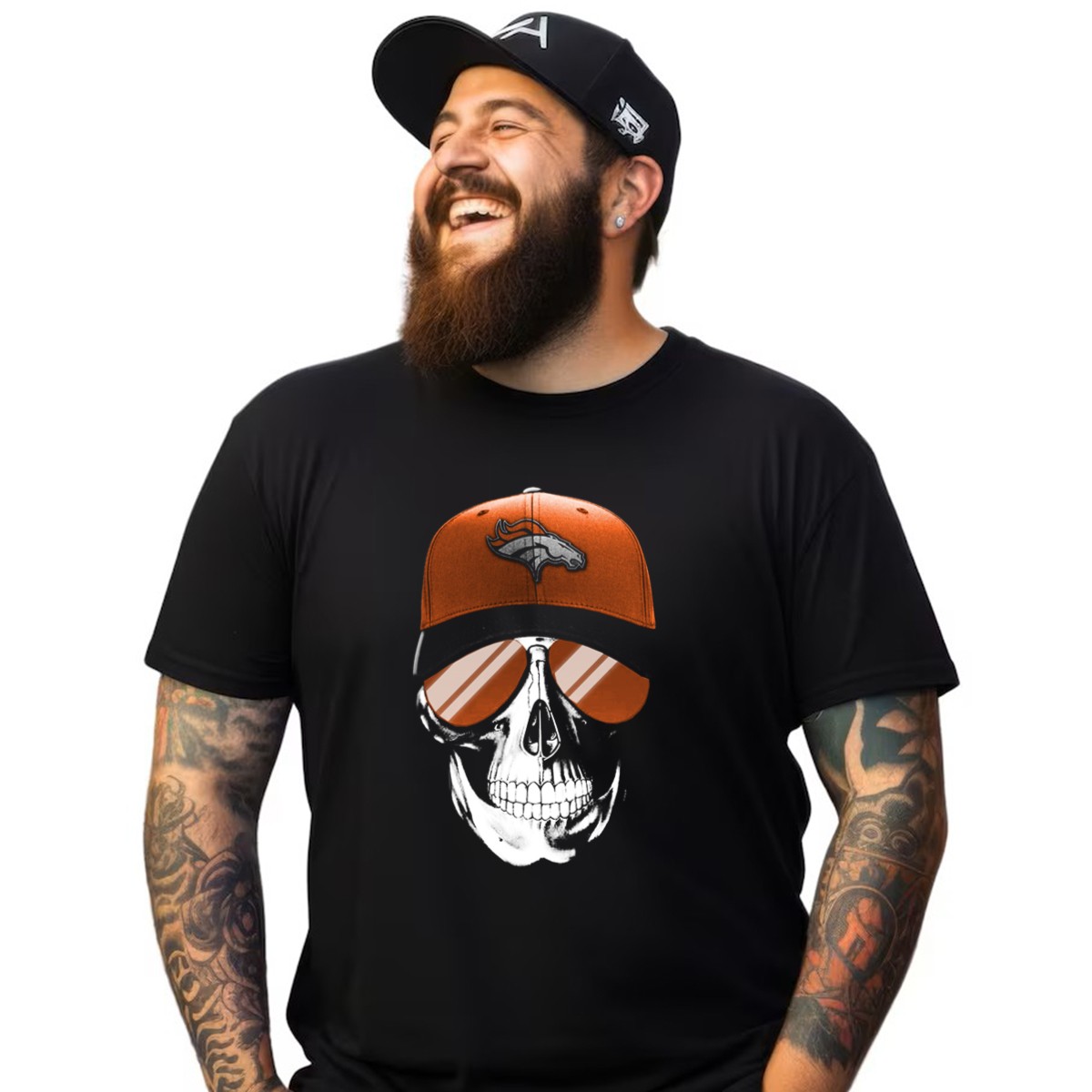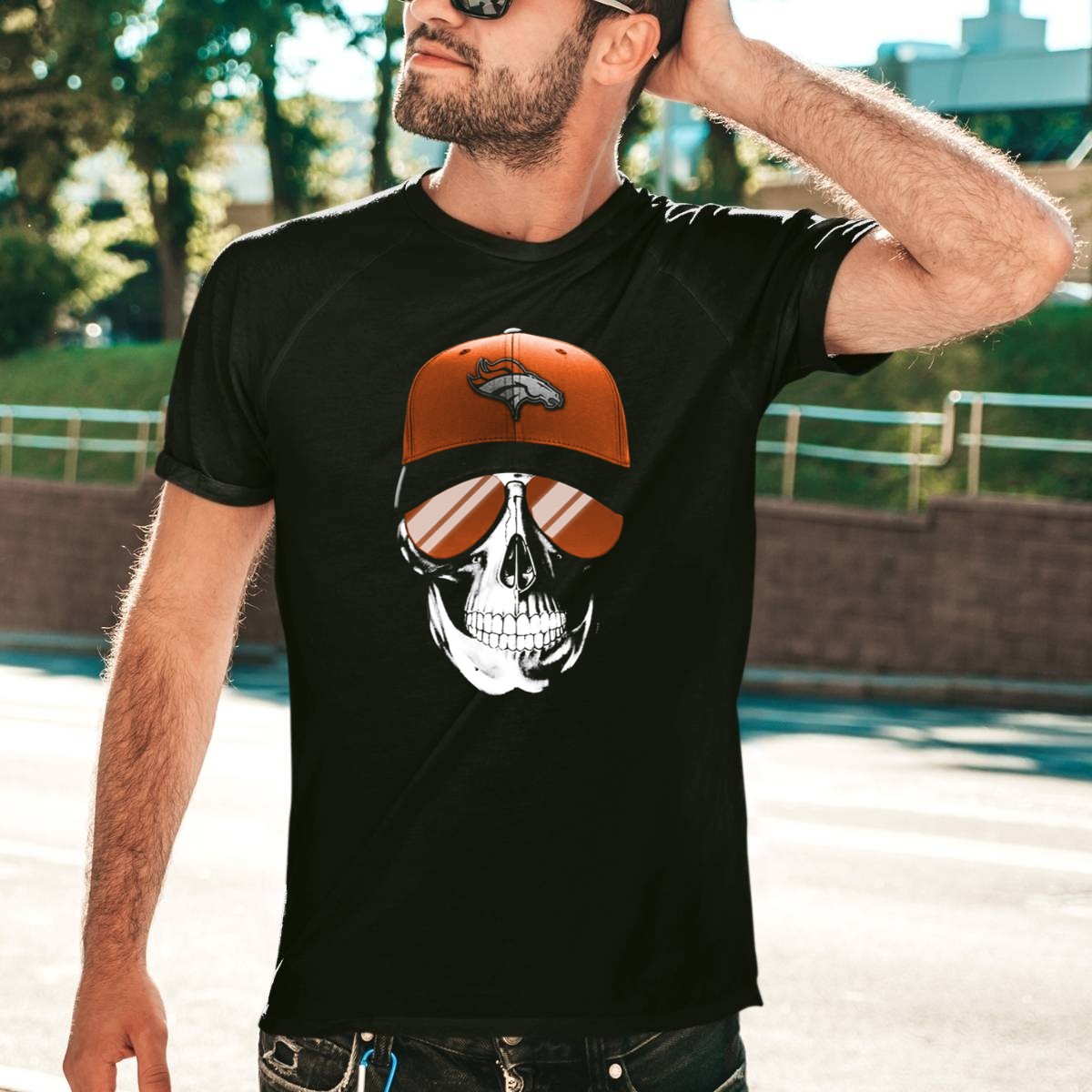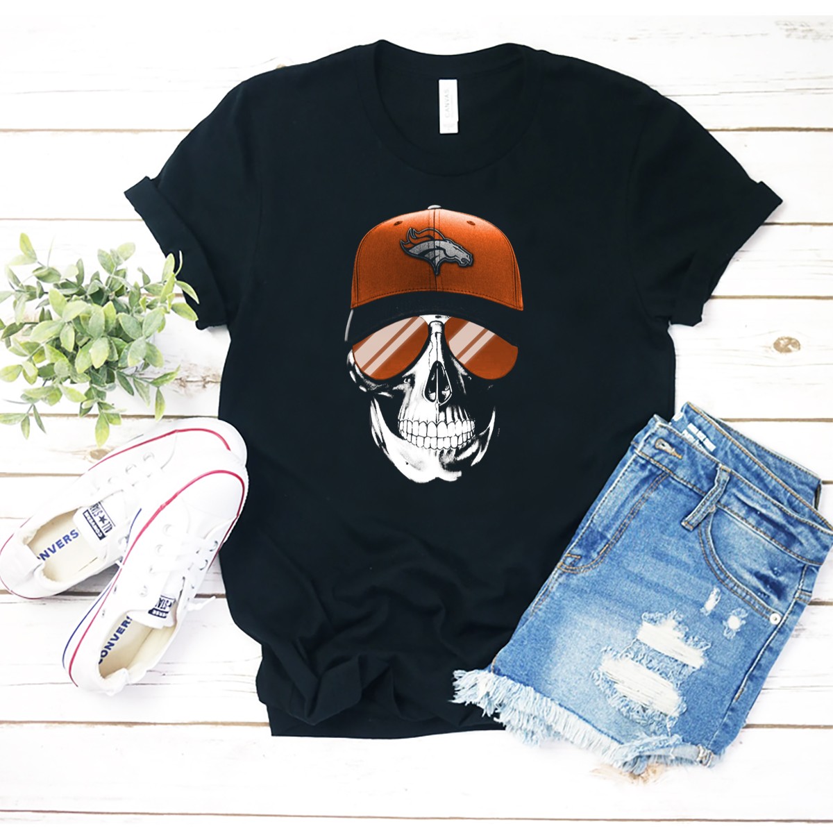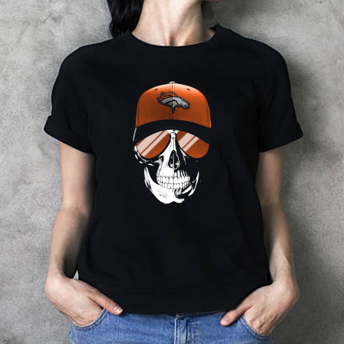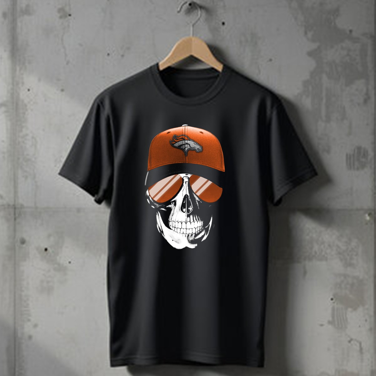 Skull V7 Denver Broncos Cap And Sunglasses T-Shirt