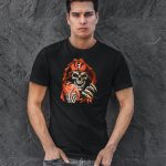 Show off your team spirit with our Skullbong Cincinnati Bengals Skeleton T-Shirt! This fun and unique design features a skeleton holding a Wilson football, complete with the iconic team logo on a hat and cape. Perfect for dedicated Bengals fans, this shirt is ideal for casual outings, themed events, or simply cheering on your team from the comfort of your home. Made in the USA, this fan-made design combines creativity with comfort, making it a must-have for any football enthusiast.